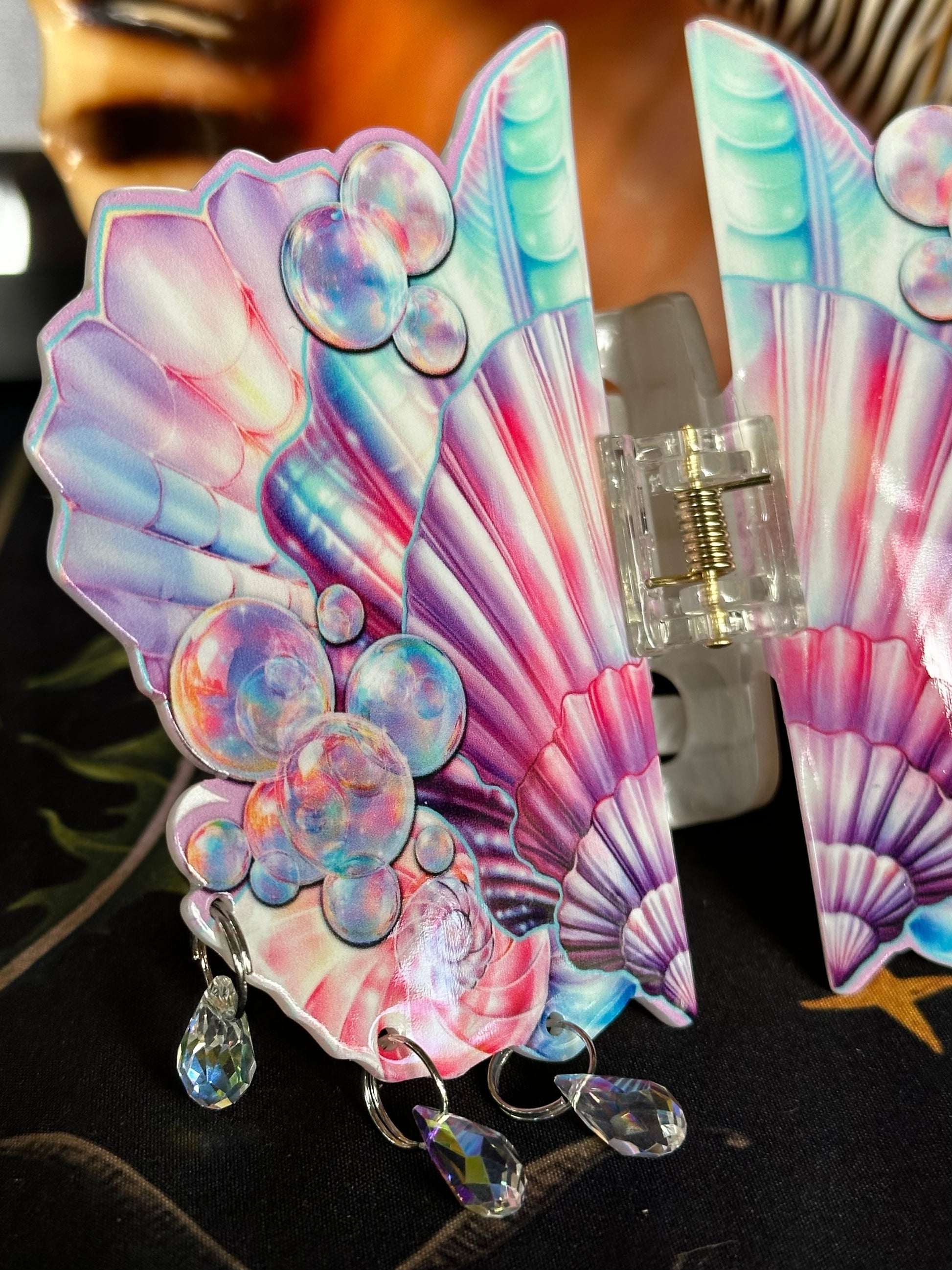 This custom made butterfly hair clips is adorned with crystals so you can look fresh out of the oceans.