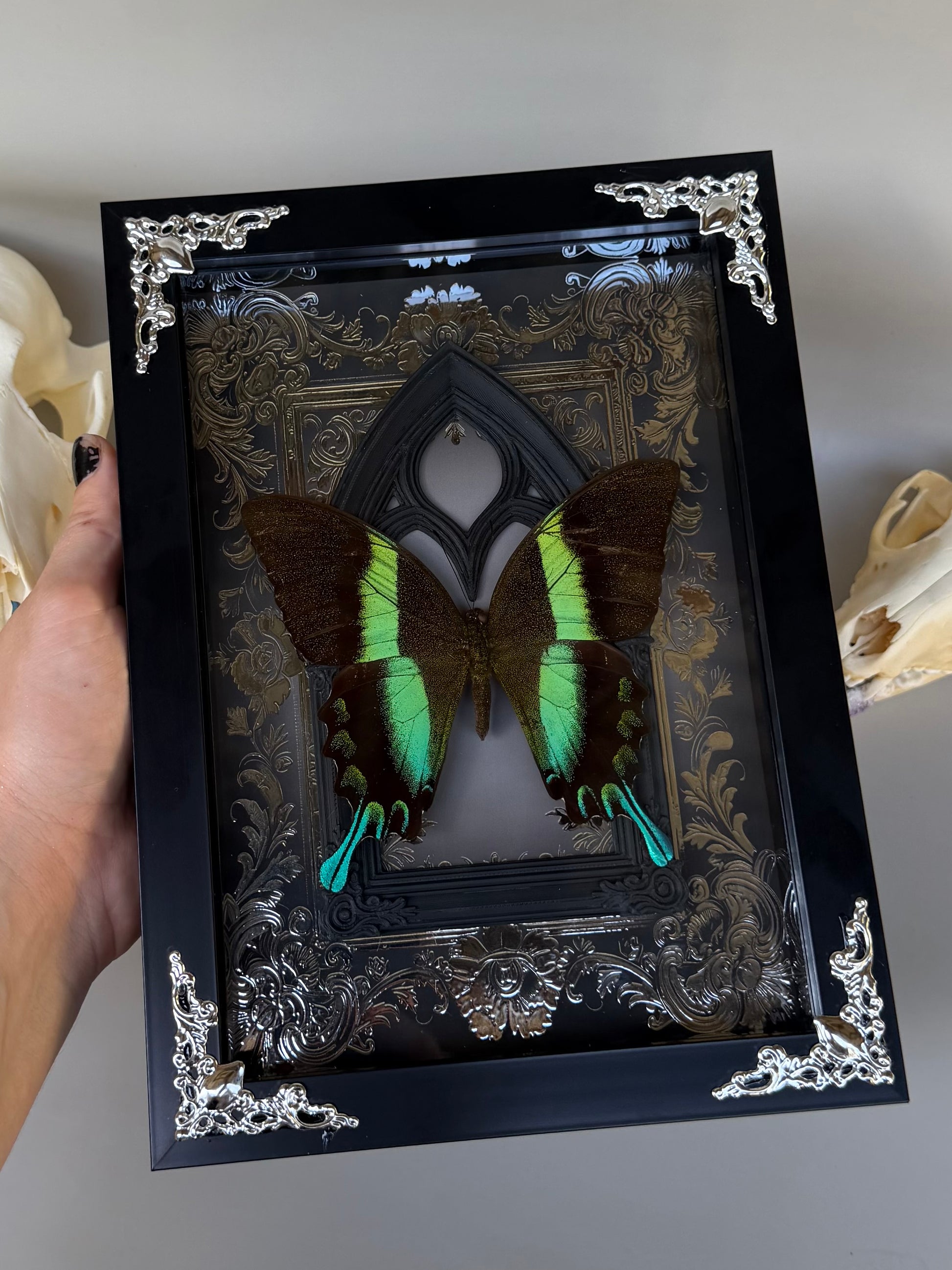 GREEN SWALLOWTAIL - Papilio Blumei Framed Specimen *DAMAGED*