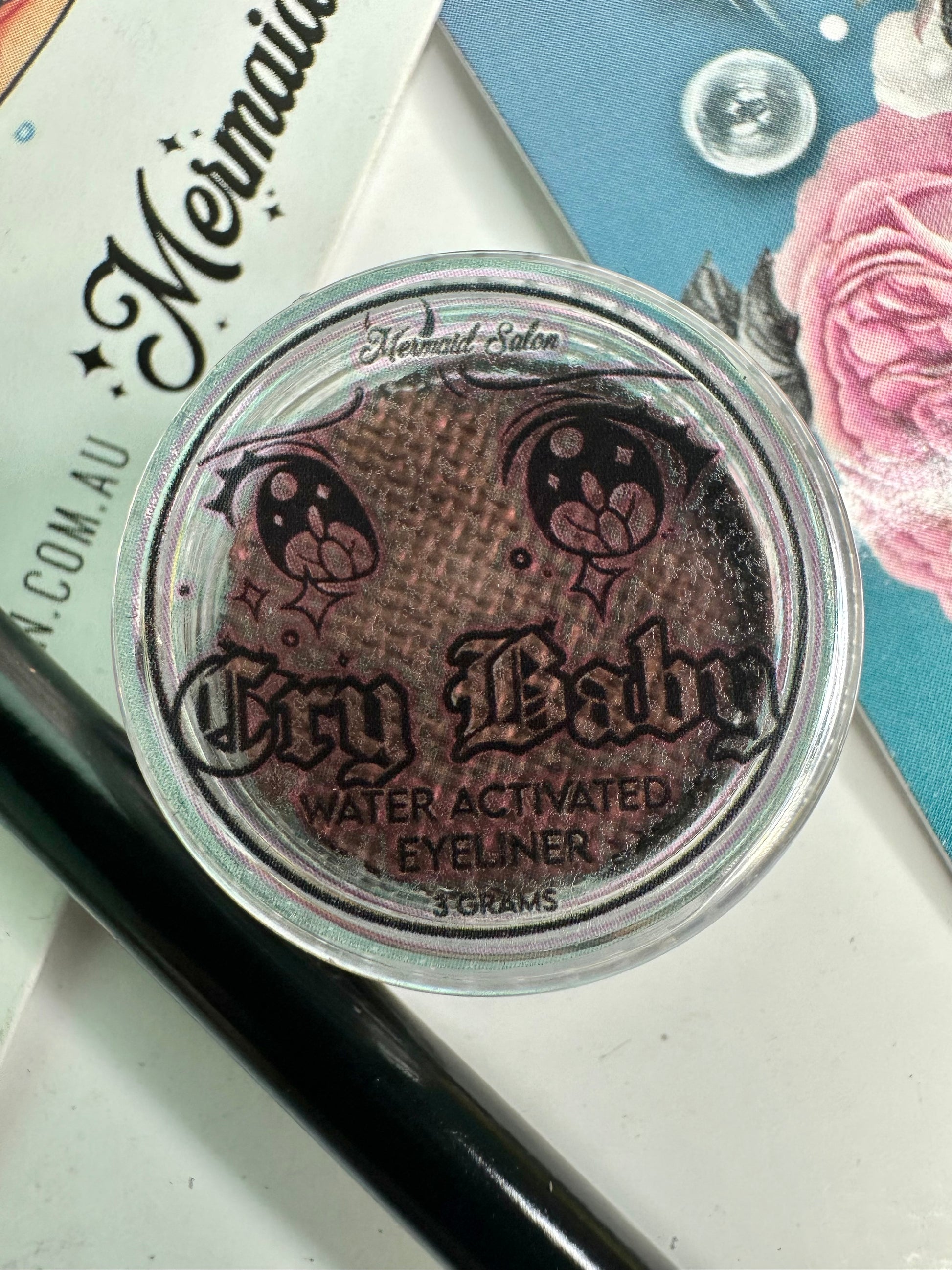 Mermaid Salon CryBaby Aqua-Liner is a traditional eyeliner / face paint hybrid. Cauldron smoke is a beige to lilac to aqua pastel shift.