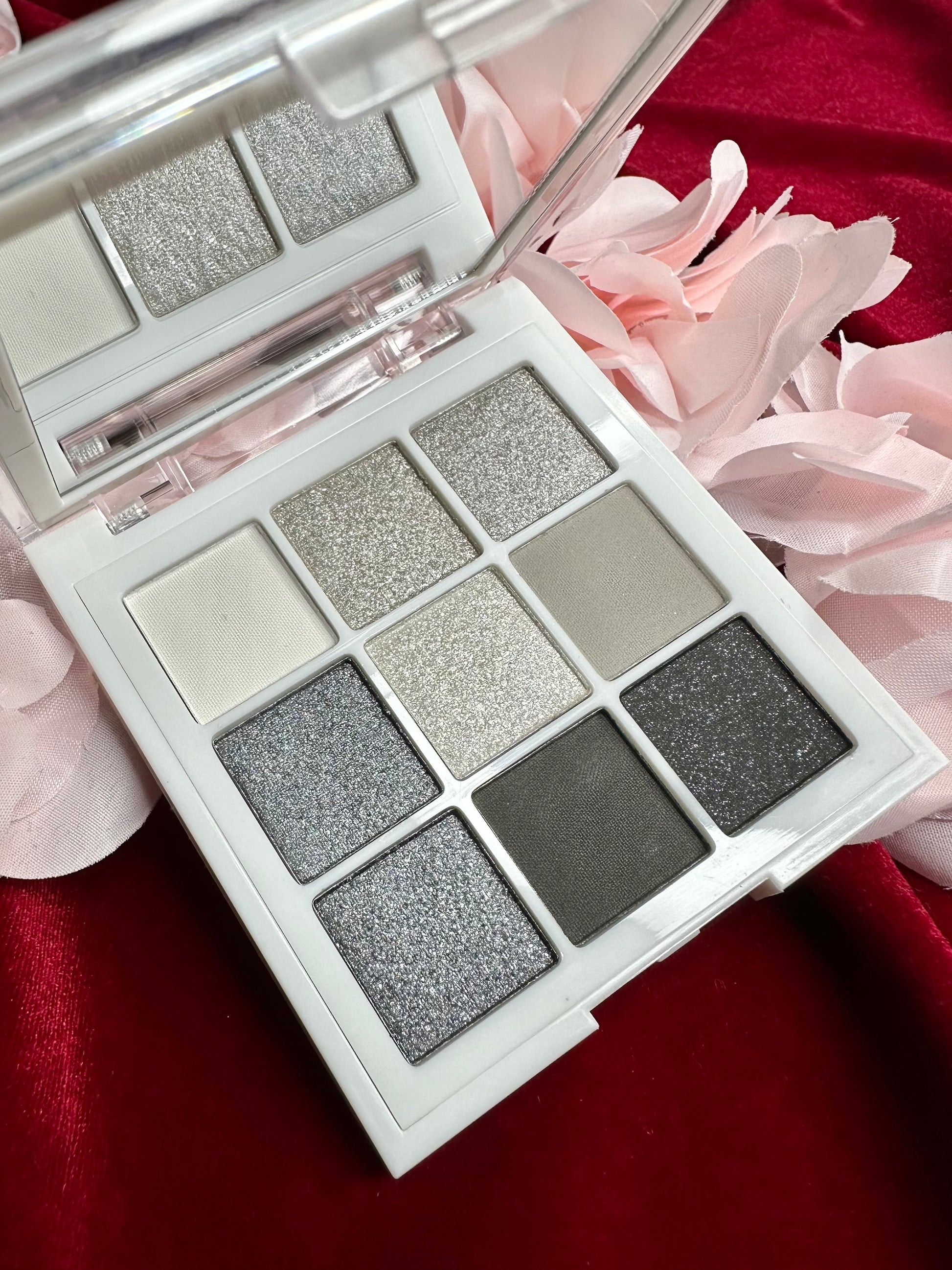 9 shades oof silvers and greys! mates, foils and shimmers to create the hottest cool eye out! Comes with a mirror inset for easy application. Smokin'!