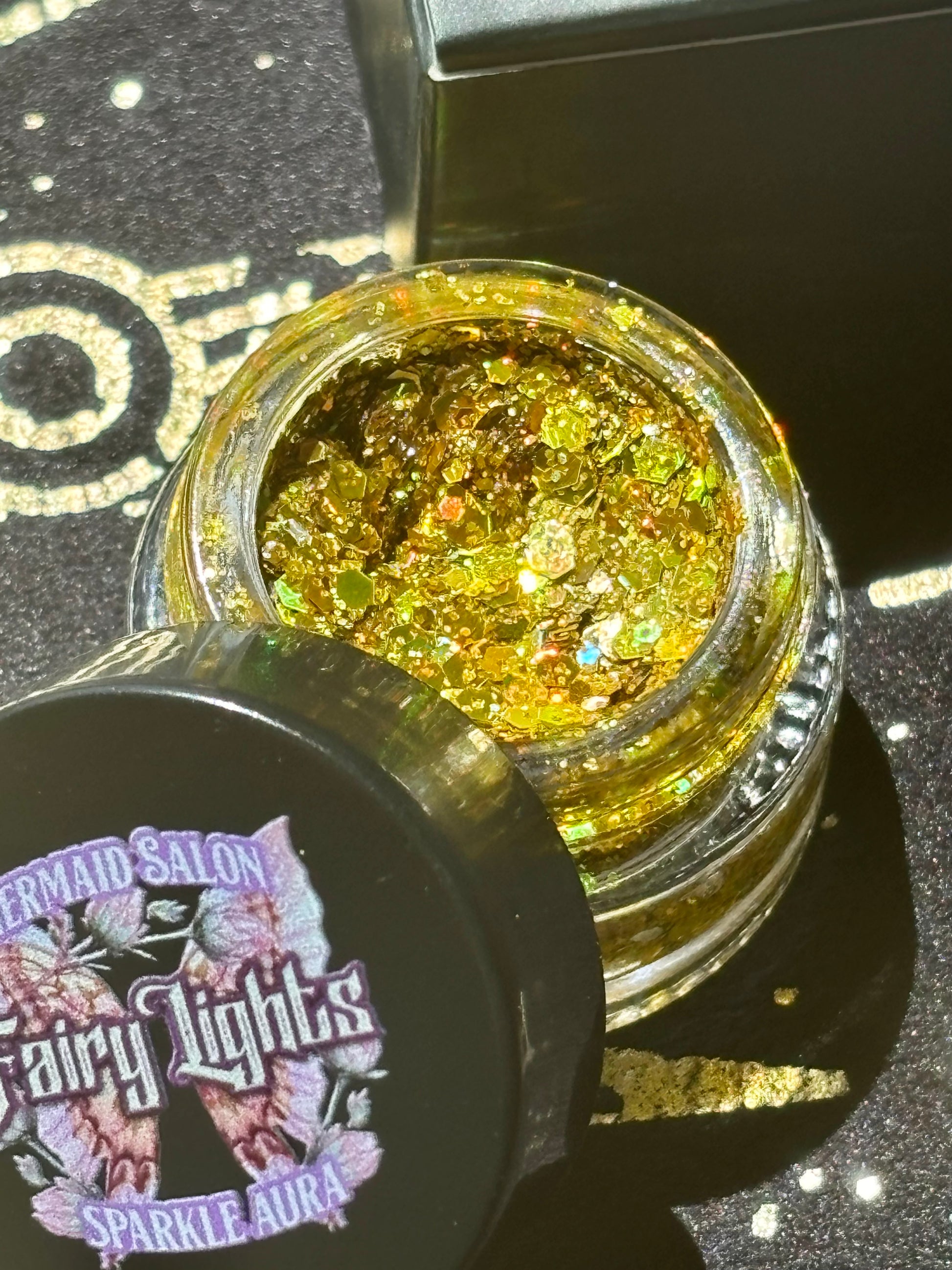 Add a dash of whimsy to your look with mermaid salon fairy lights sparkle aura balm!