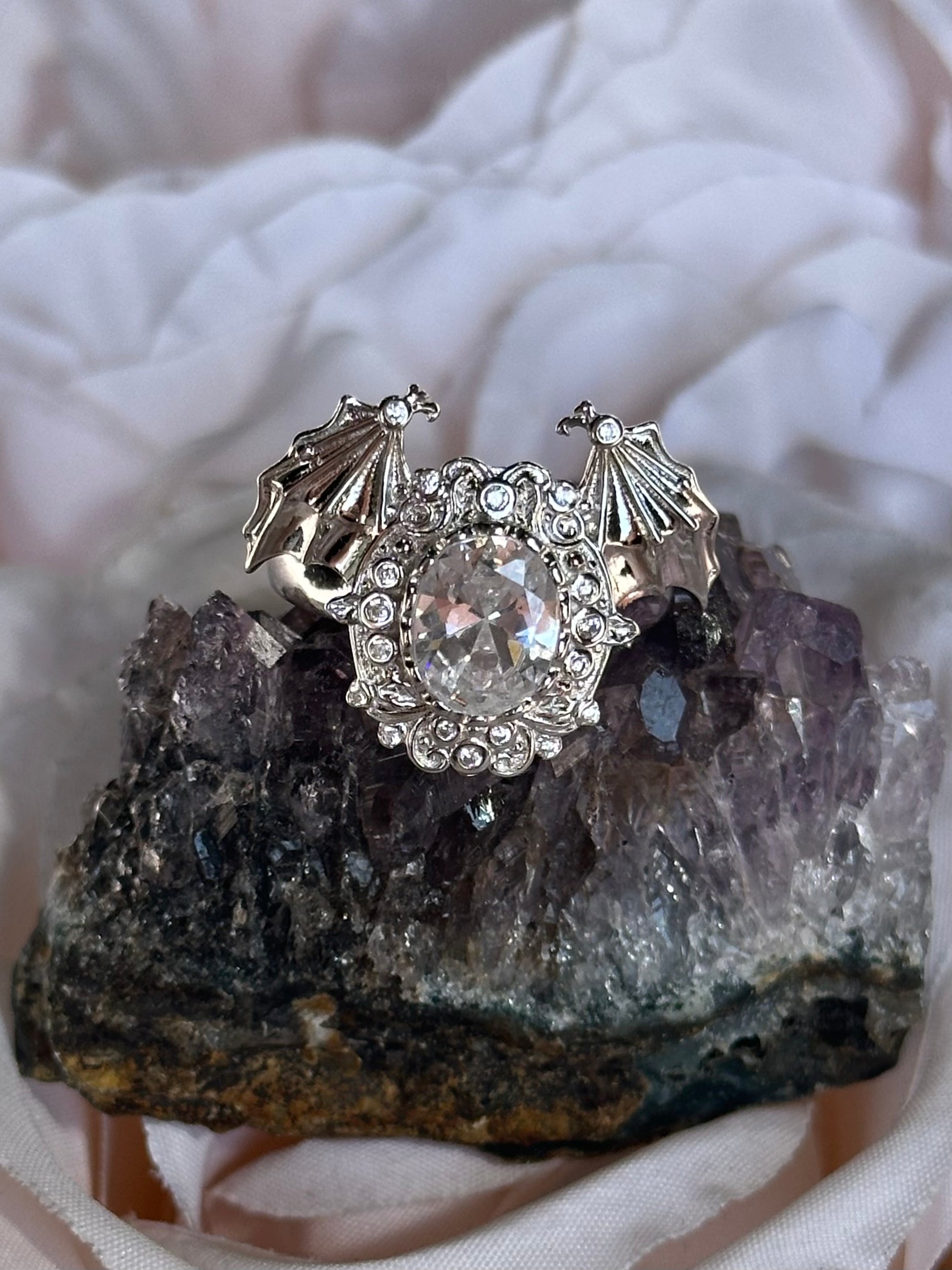 The lugosi legacy ring is here. Expertly crafted from 925 silver (with plating) and a beautiful, 1cm tall oval cubic zirconia.