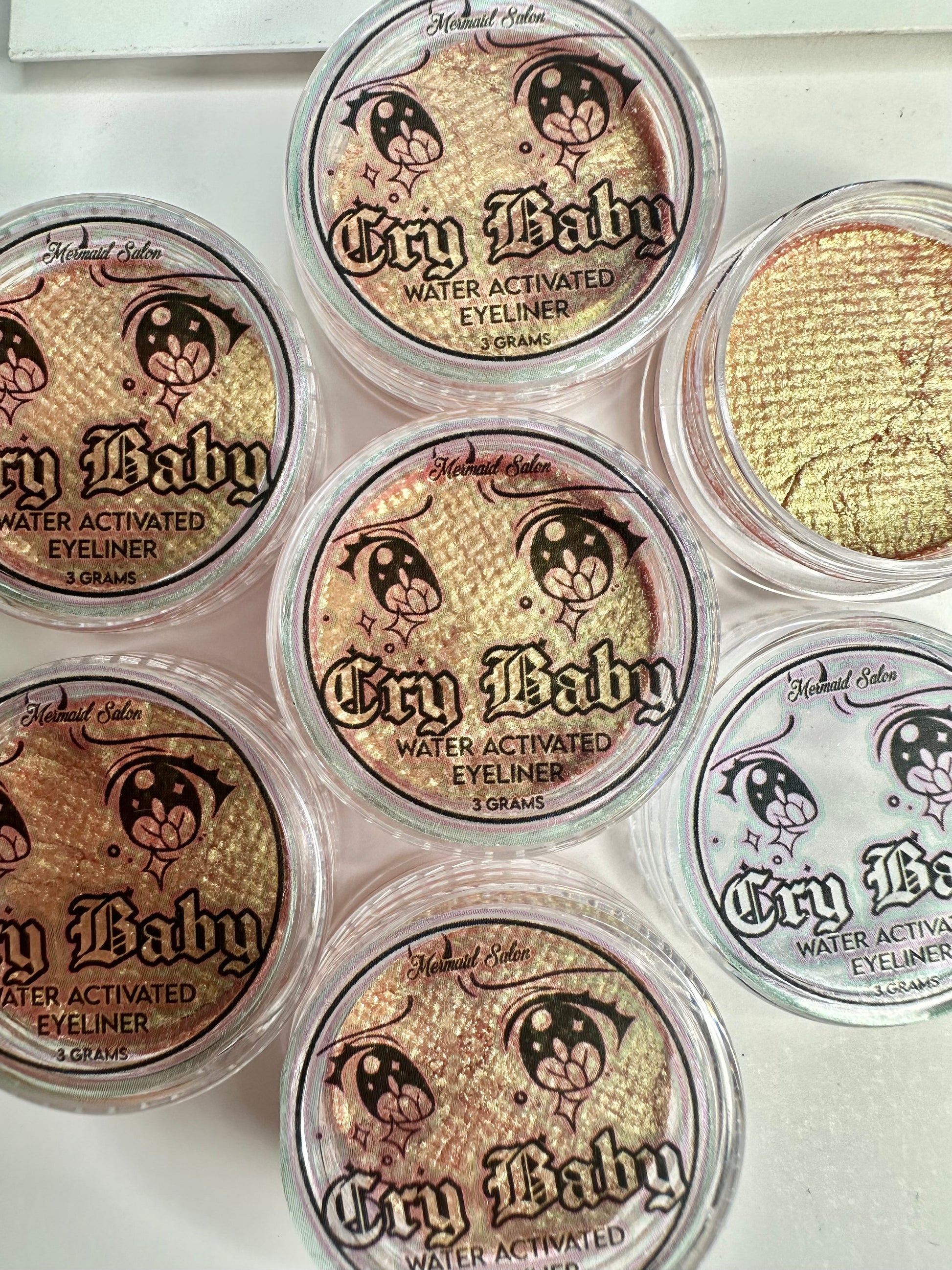 Mermaid Salon CryBaby Aqua-Liner is a traditional eyeliner / face paint hybrid. Cauldron smoke is a beige to lilac to aqua pastel shift.