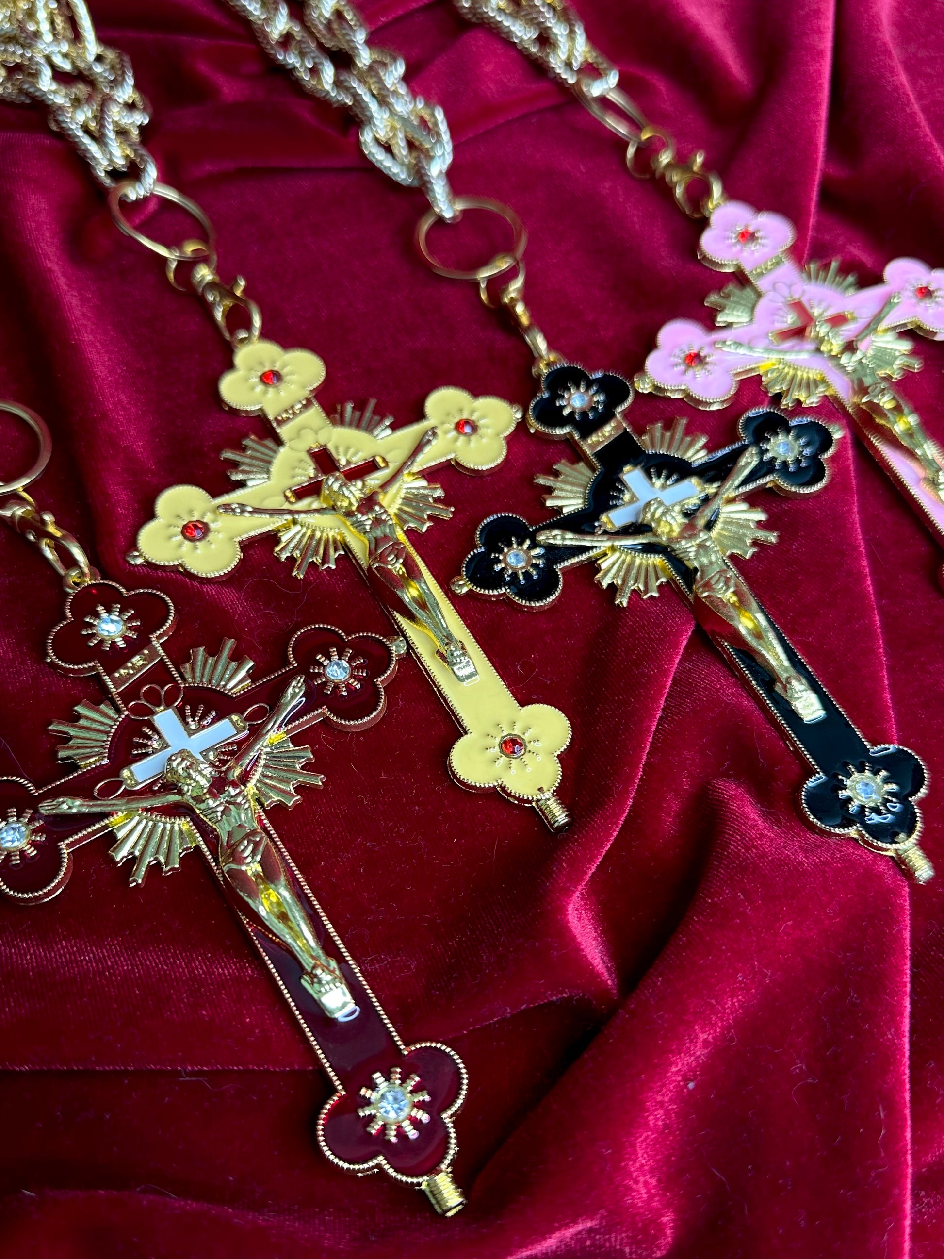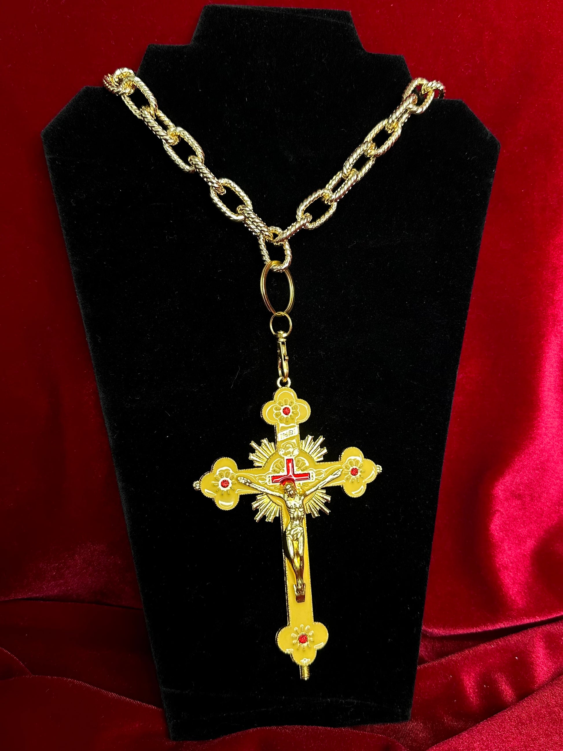 measurements: Pendant, Width 8.5cm x Length 12.5cm. Removable snap closure, 5cm. Chain, Length 44cm, hangs at 22cm (plus 5cm for snap closure)