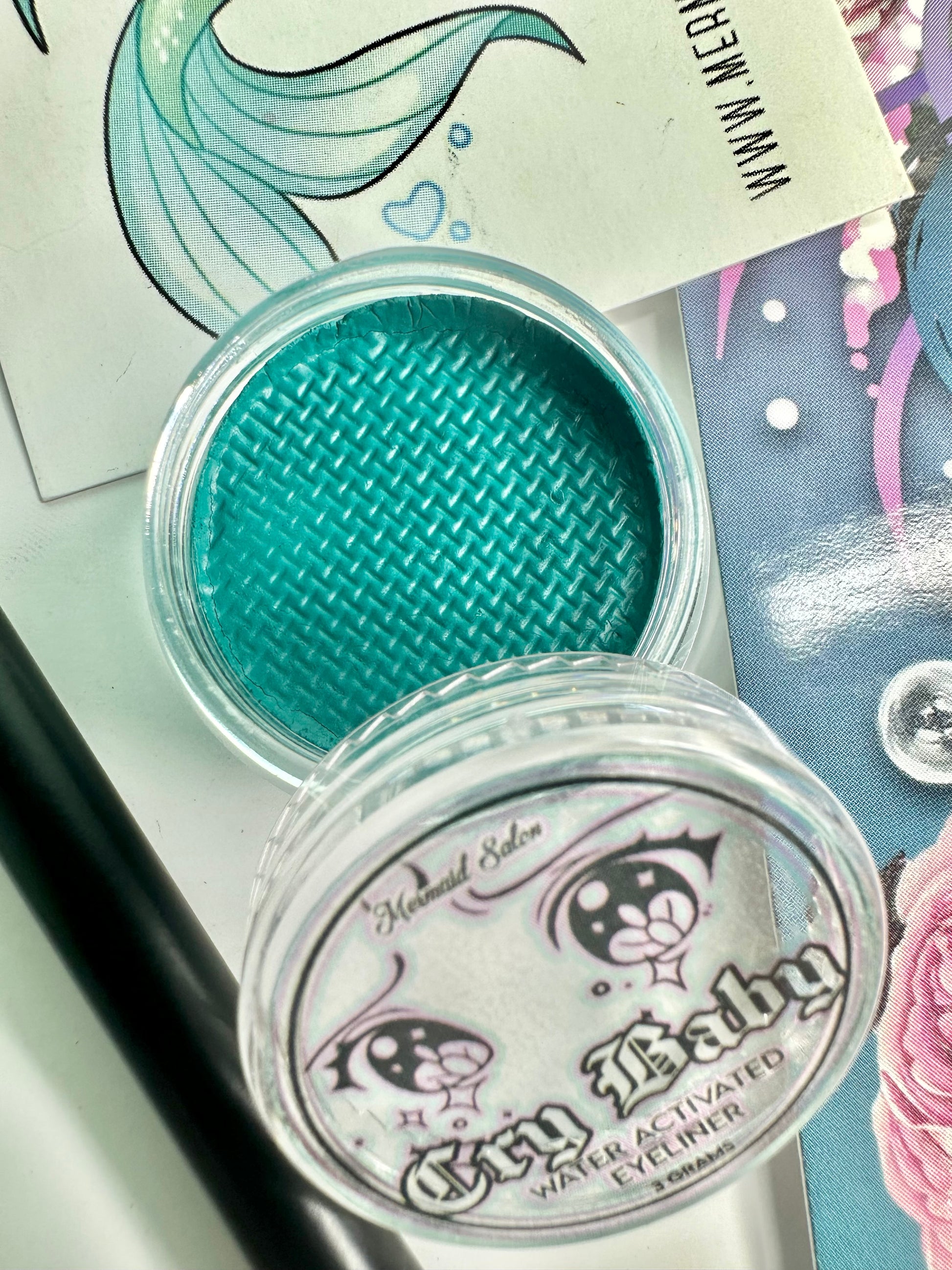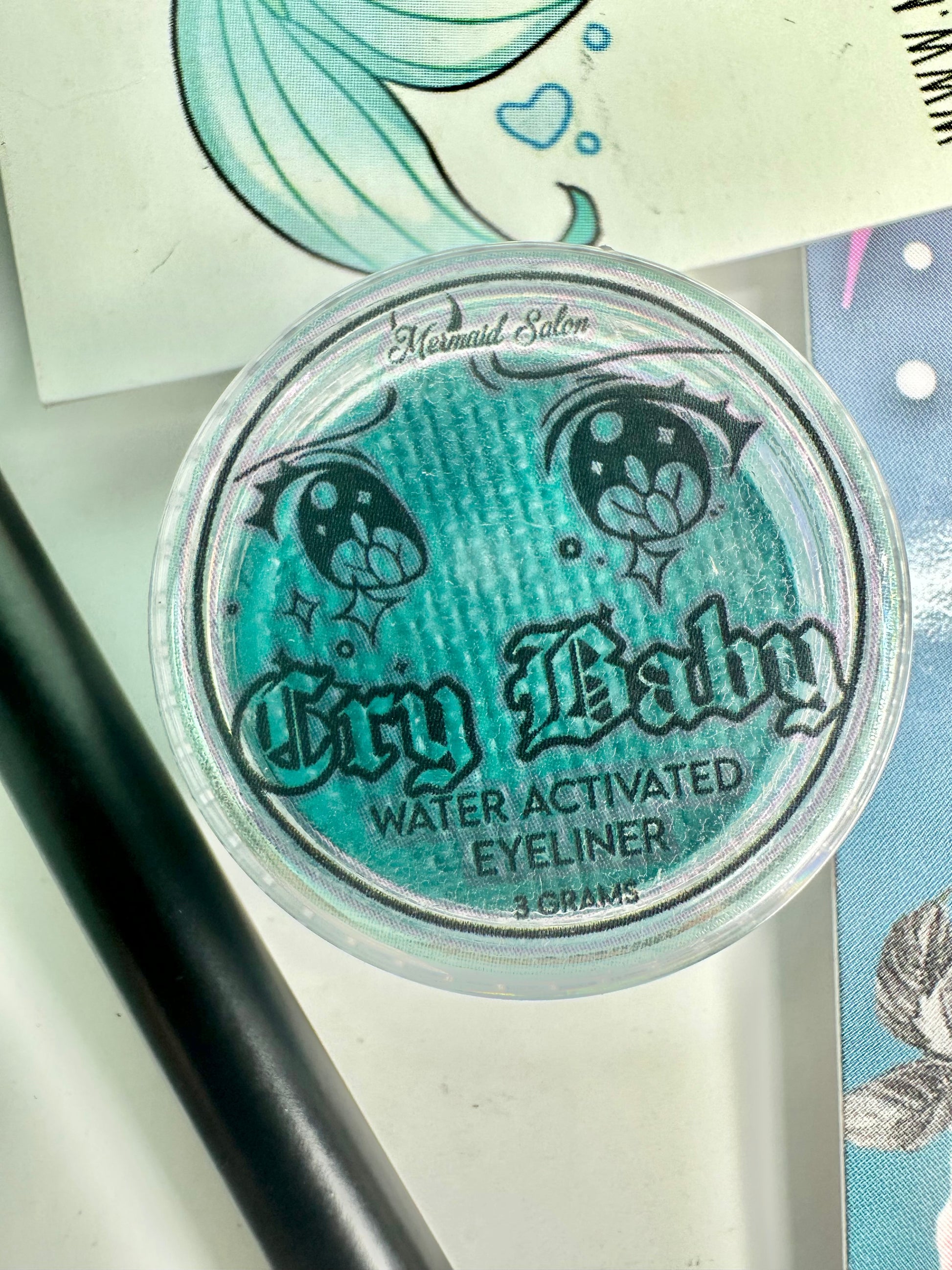 Mermaid Salon CryBaby Aqua -Liner is a traditional eyeliner / face paint hybrid.