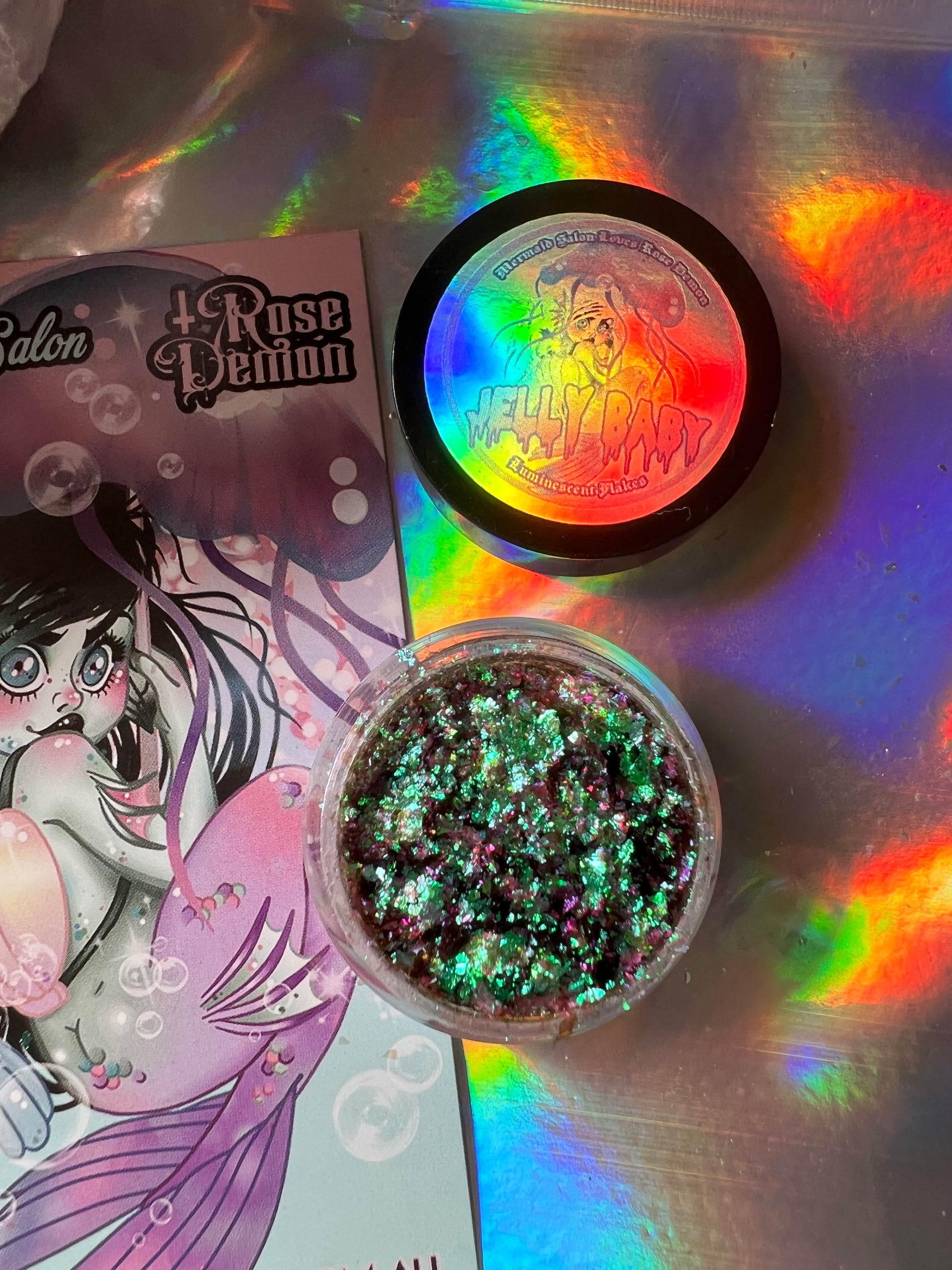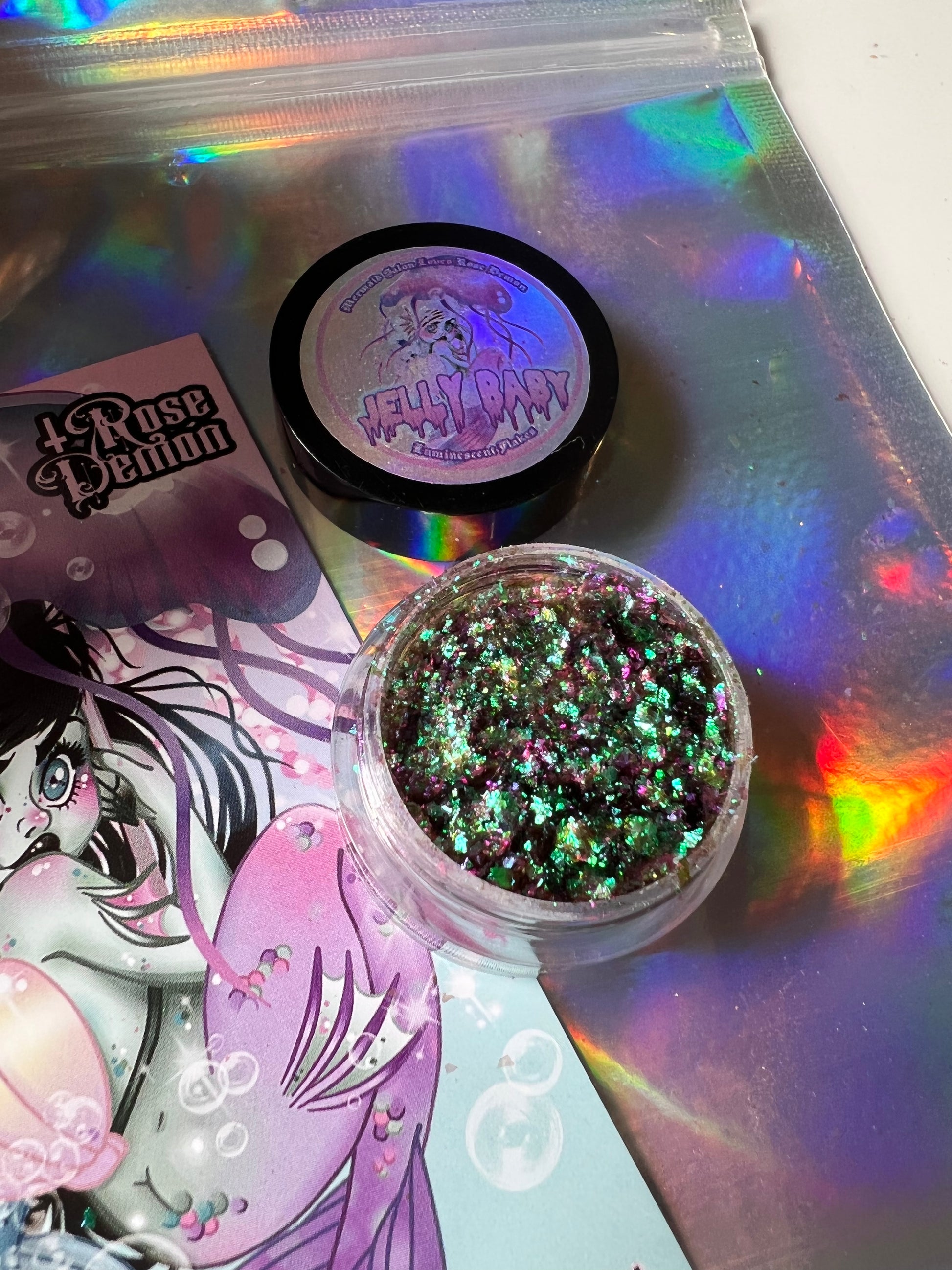 use: Mix jelly baby flakes with application gel to create a colour shift highlight like no other.