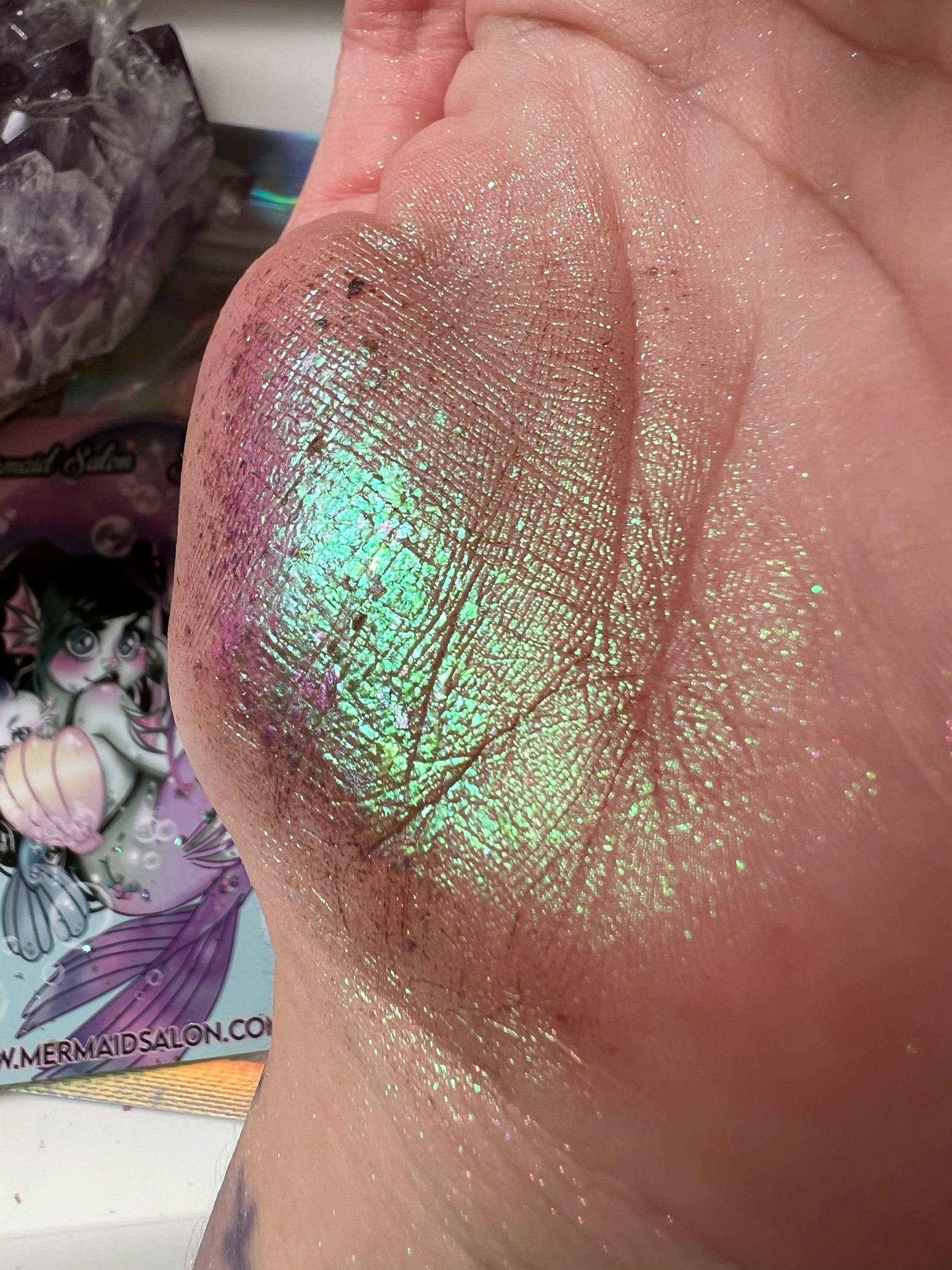 alternatively, apply application gel directly to skin, allow to turn slightly tacky after a few second and pat iridescent flakes over the top.