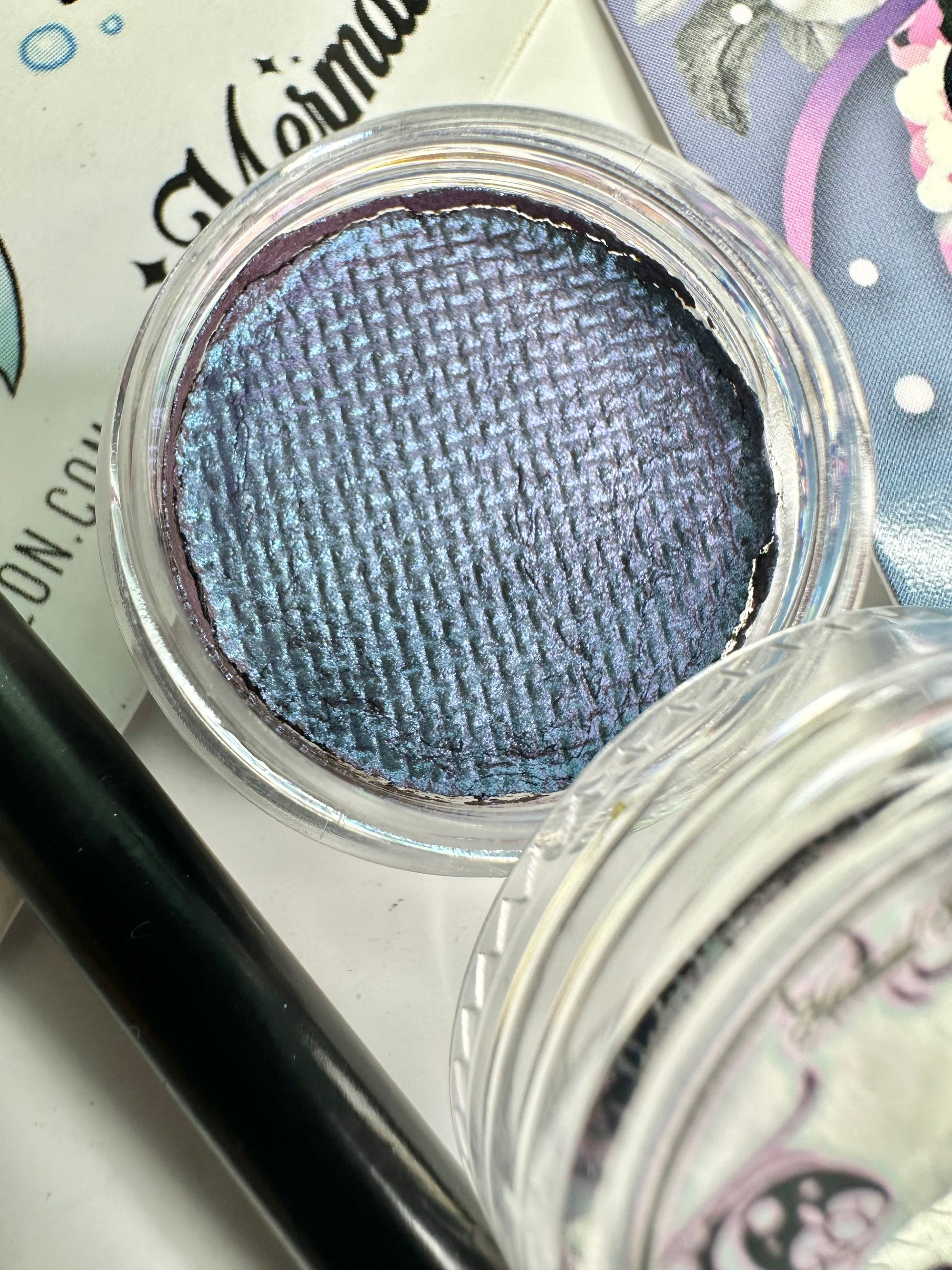 Mermaid Salon CryBaby Aqua-Liner is a traditional eyeliner / face paint hybrid. Cauldron smoke is a beige to lilac to aqua pastel shift.
