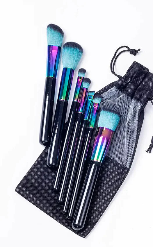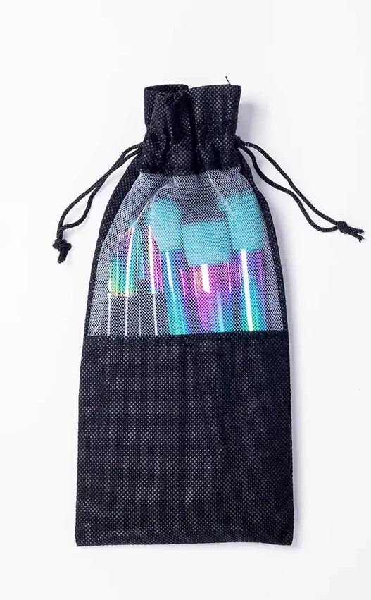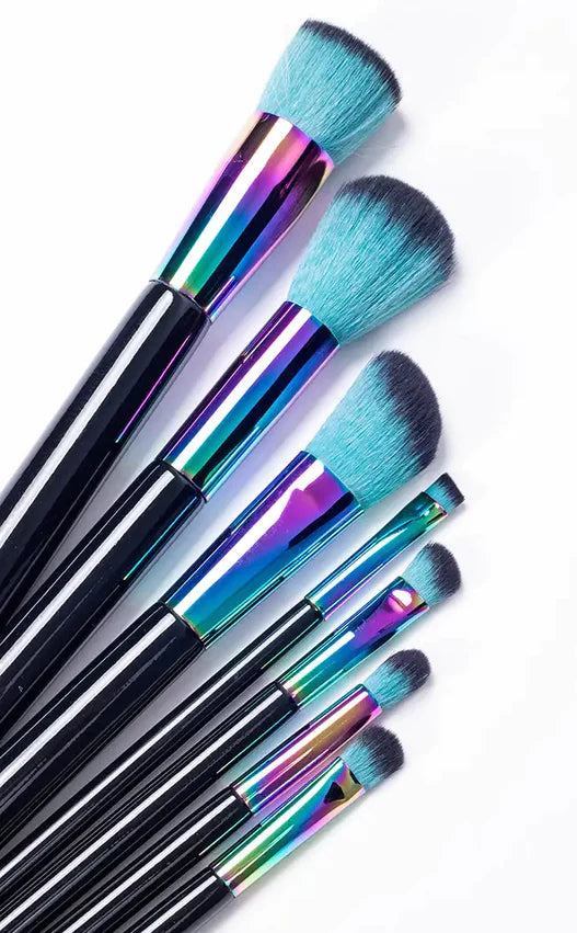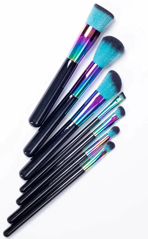 This set features rainbow brush ferrules and blue tips for a unique and eye-catching effect.