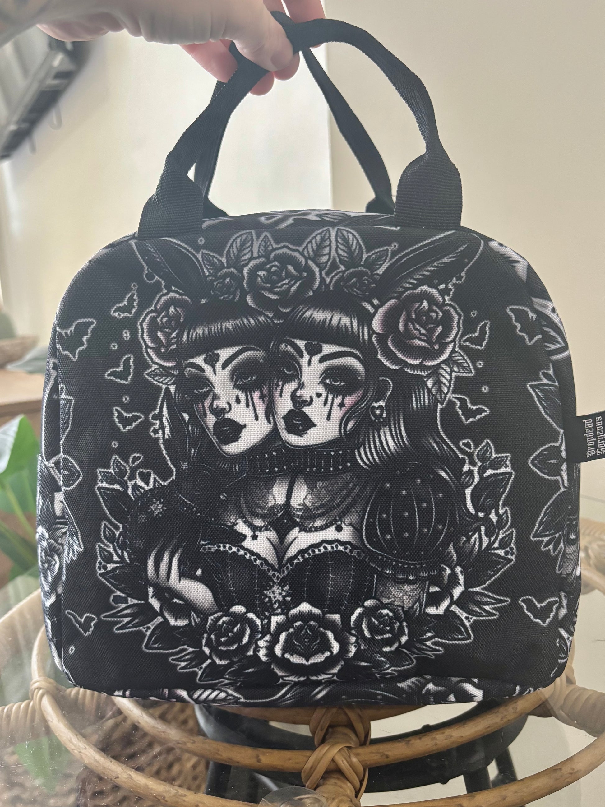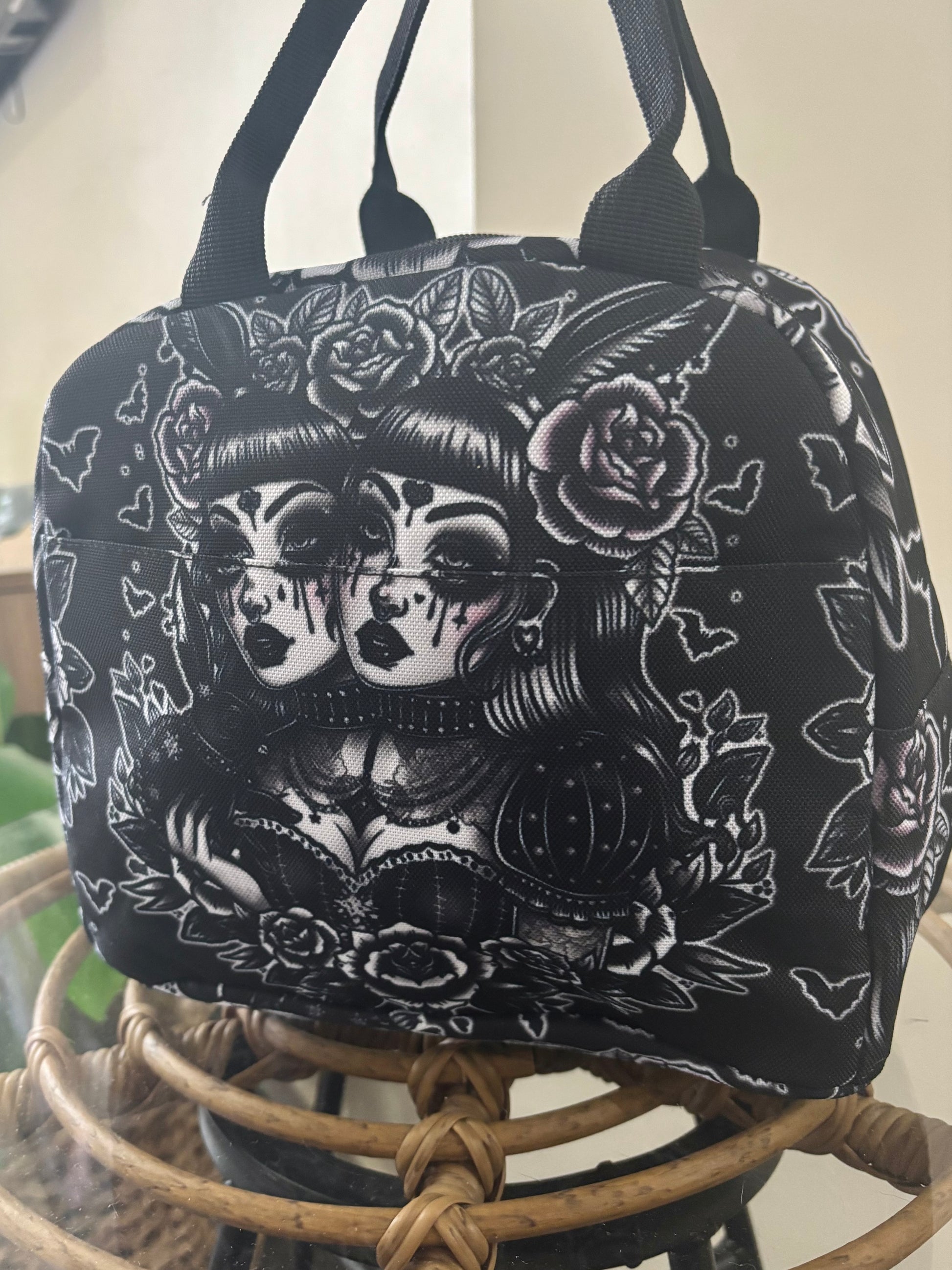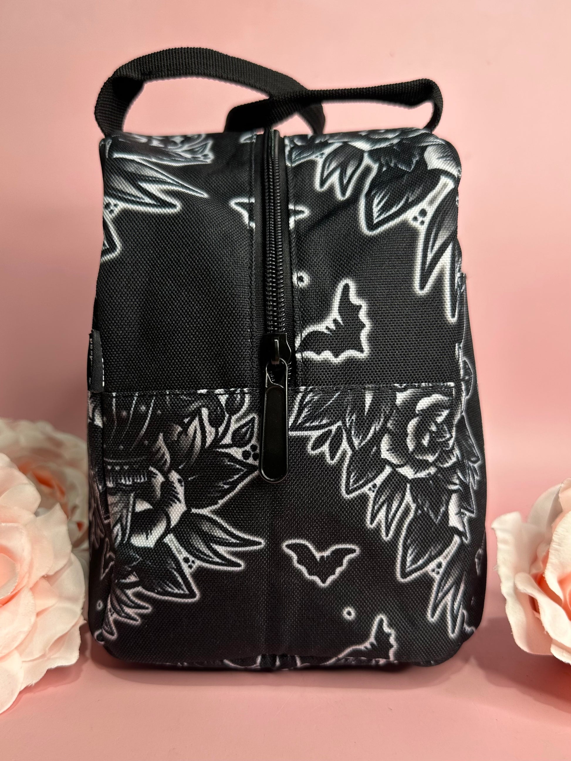 Spend your lunch time in magical style with our insulated, zipper top lunch bags! Heavy duty poly canvas construction with insulated lining to keep your lunch either cold as the night or hot as hell.