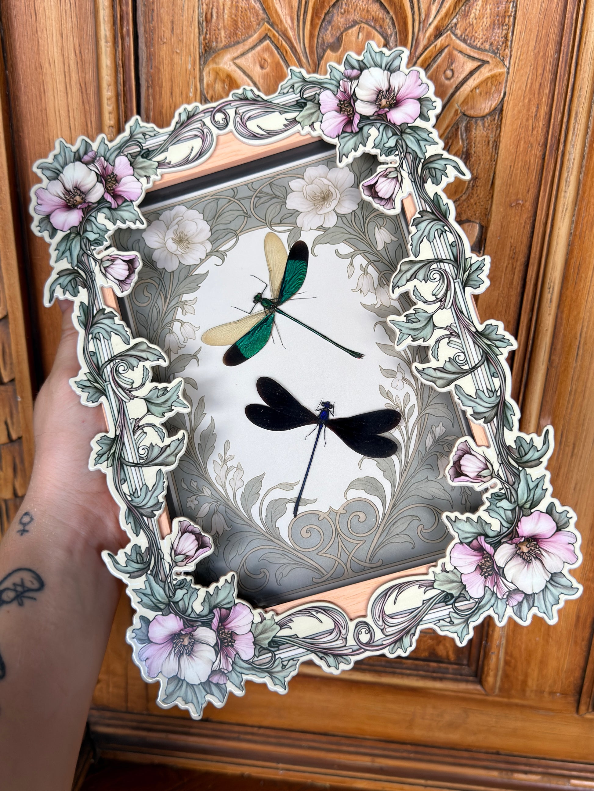 DRAGON FLY DUO Green Metalwing Damselfly & Nila Flashwing Damselfly