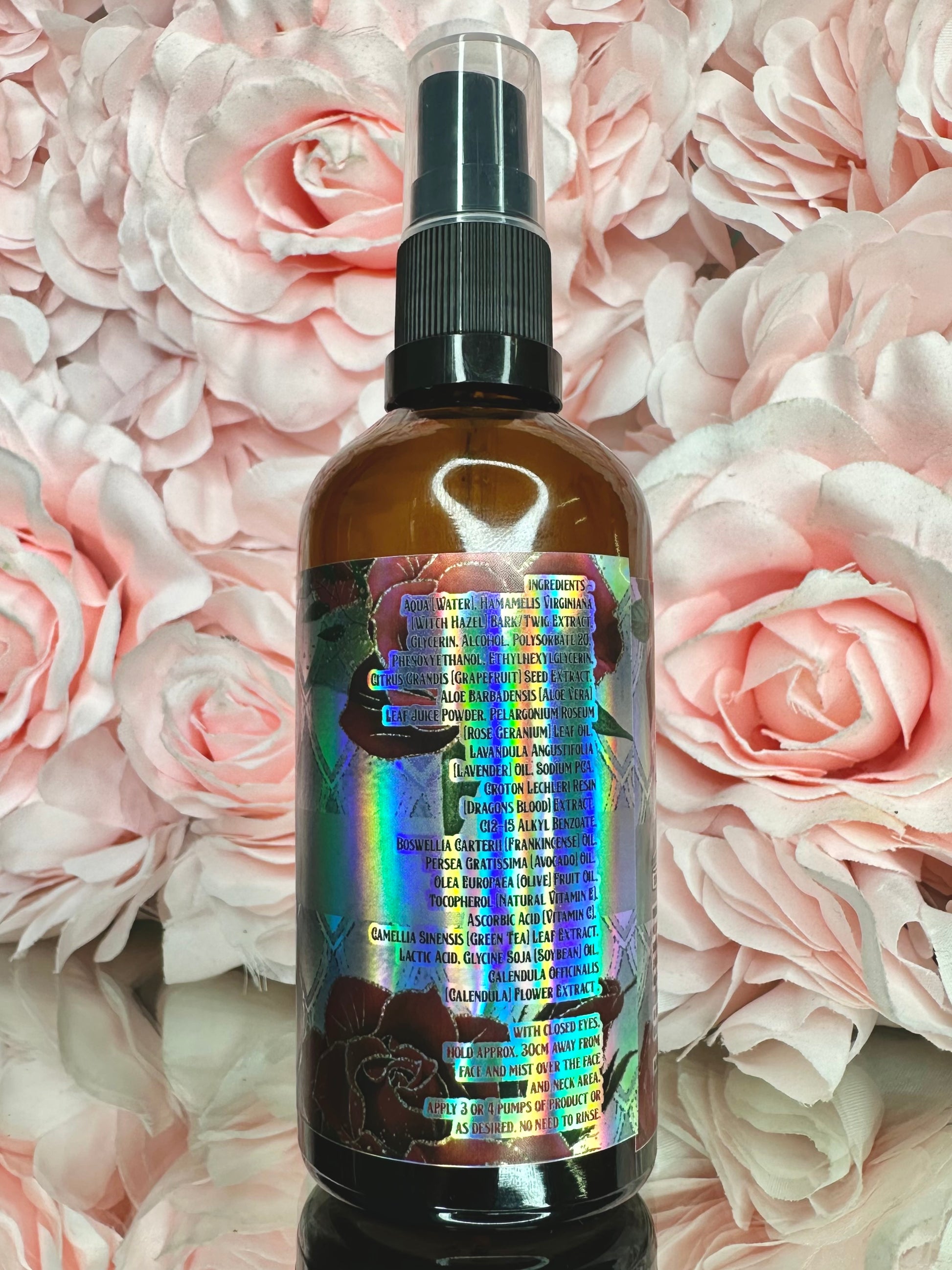 Directions: Spritz around the face avoiding the eye area, use as required with no need to rinse.