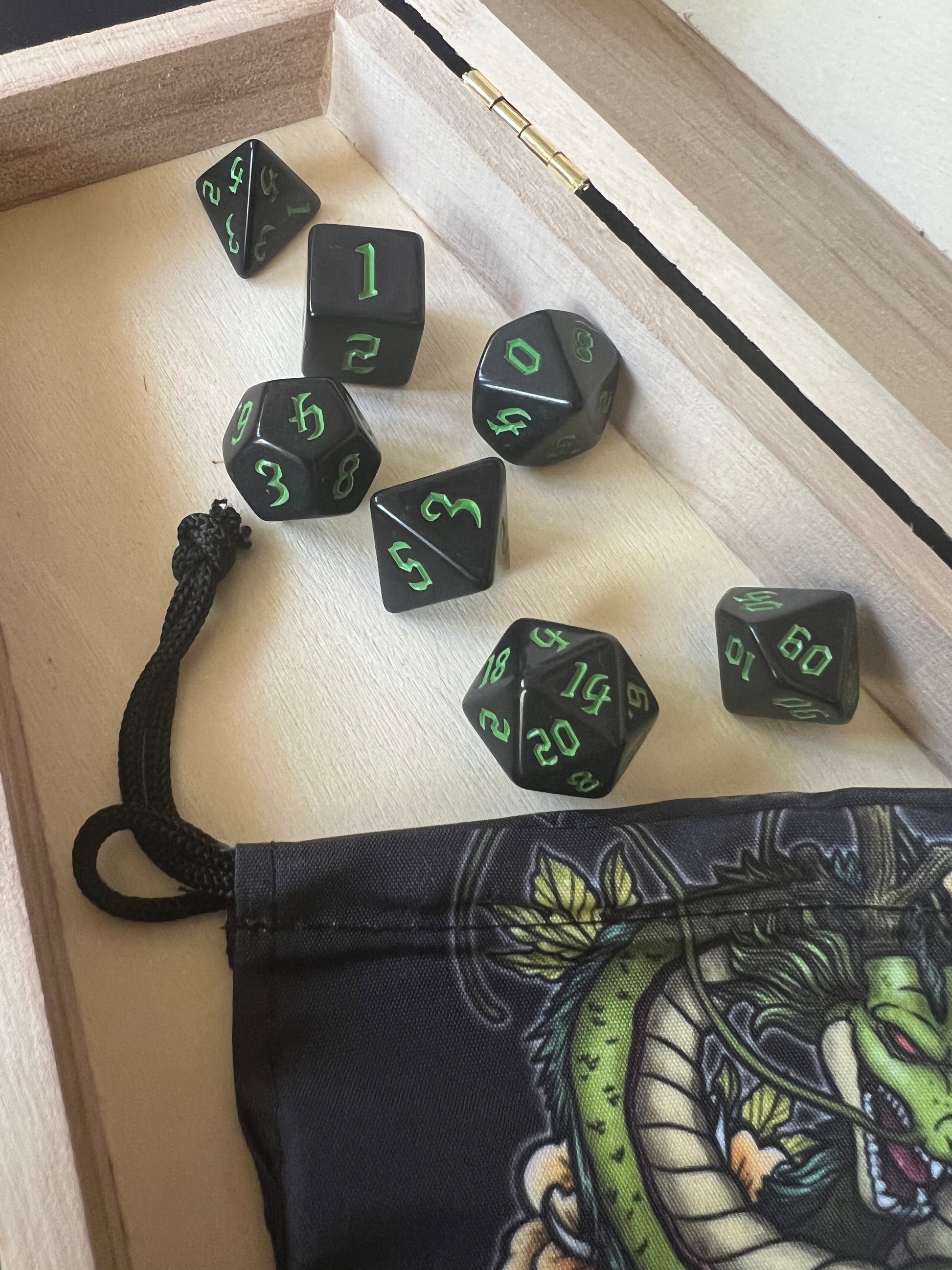 Tumble and turn your way through the dungeons with This Set of 7 essential table top dice made from cast resin.