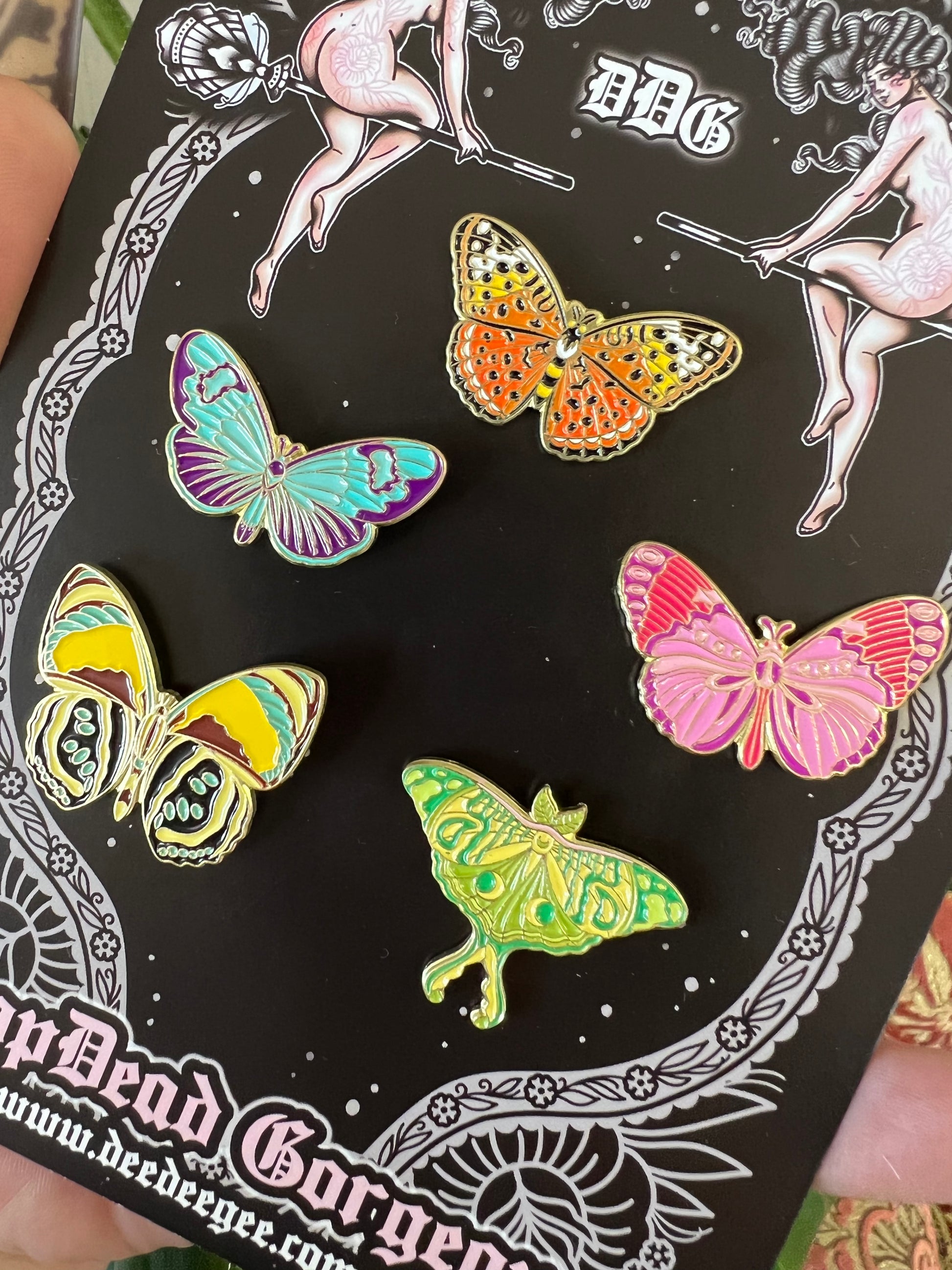 Beautiful collection of 5 vintage inspired butterfly enamel pins