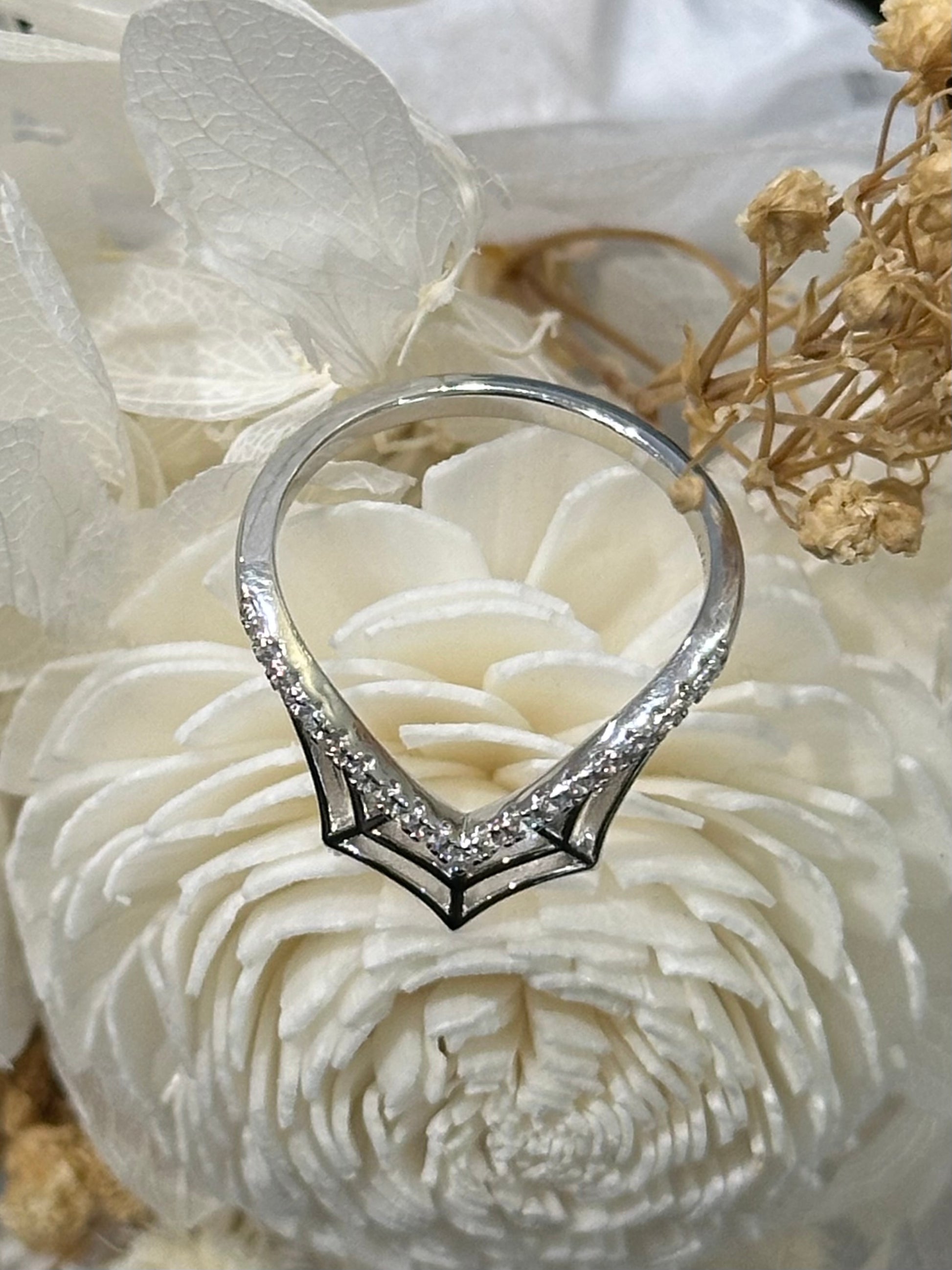 Absolutely stunning custom made ring with fine craft details constructed of 925 silver with rhodium plating for durability.