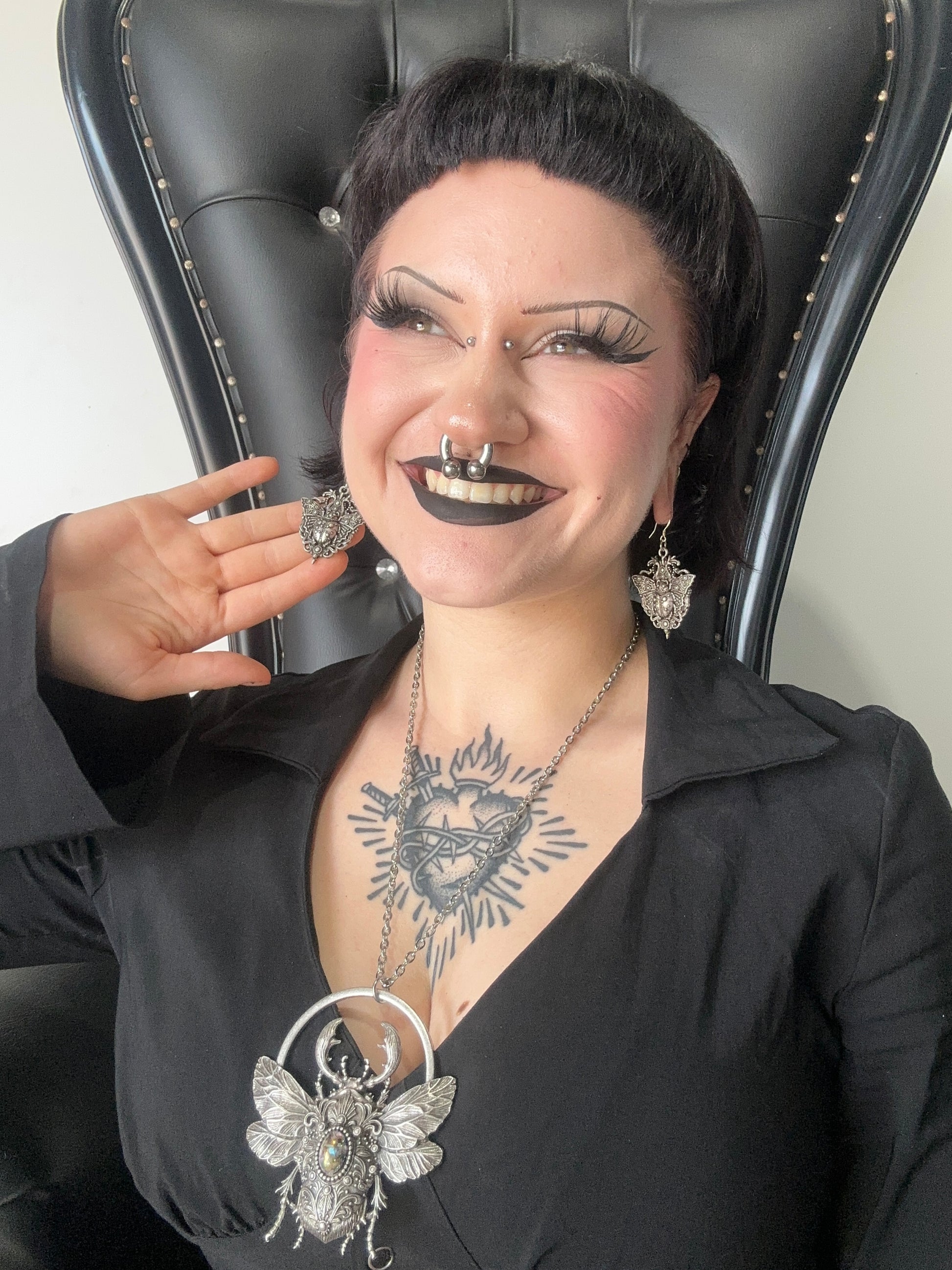 Elaborate scarab inspired charms with sprawling, ornate wings. The details in these charms are truly something behold and would make a classy and magical addition to any mystics wardrobe.