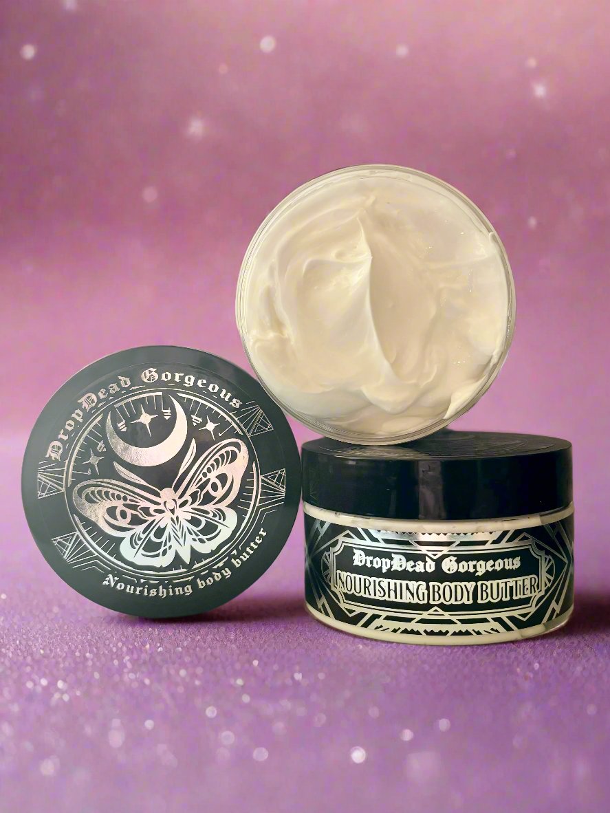 A smooth, creamy and nourishing blend of macadamia oil, vitamin E , sunflower oil and shea butter to hydrate and lock moisture into the skin.