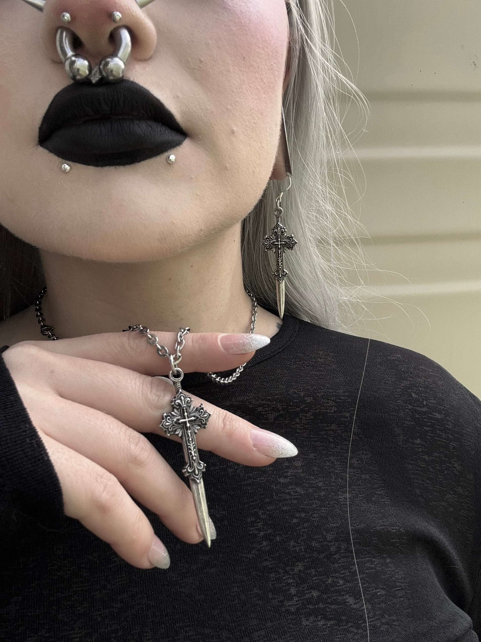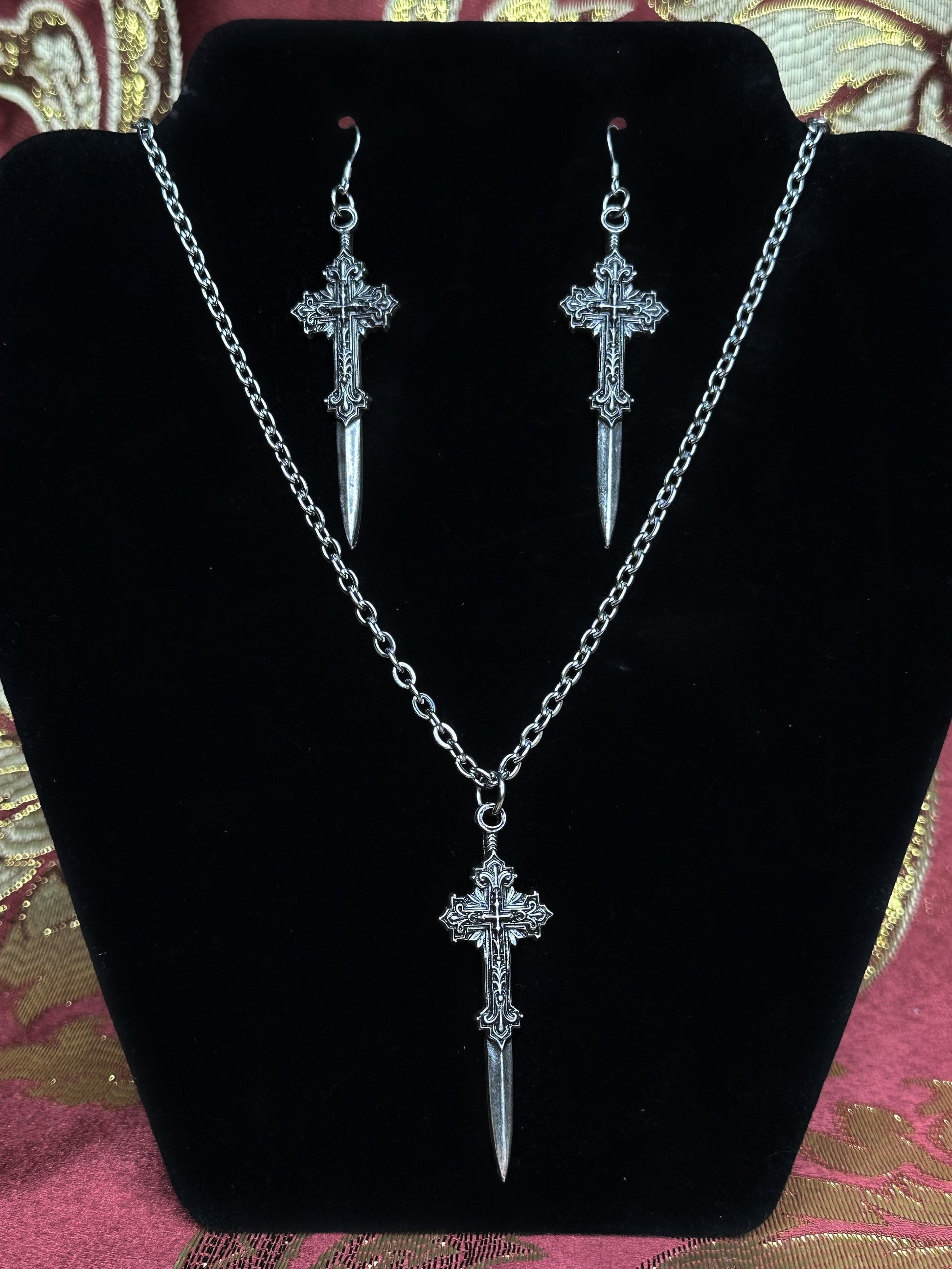 “I am not afraid; I was born to do this.” Your daily armour is not complete without a weapon. These dualing sword earrings are fit for battle (taking on another day). Can be paired with the matching necklace.