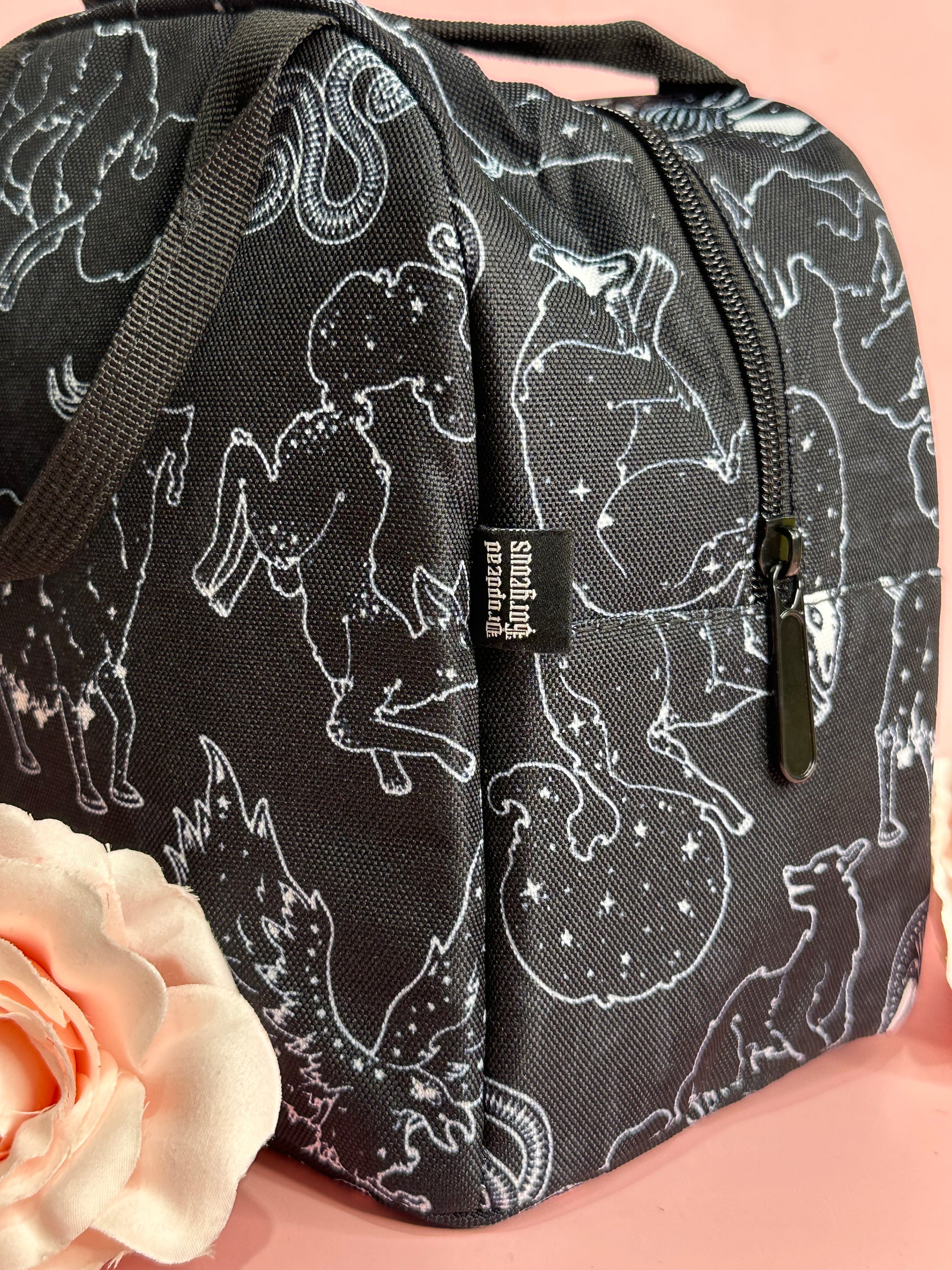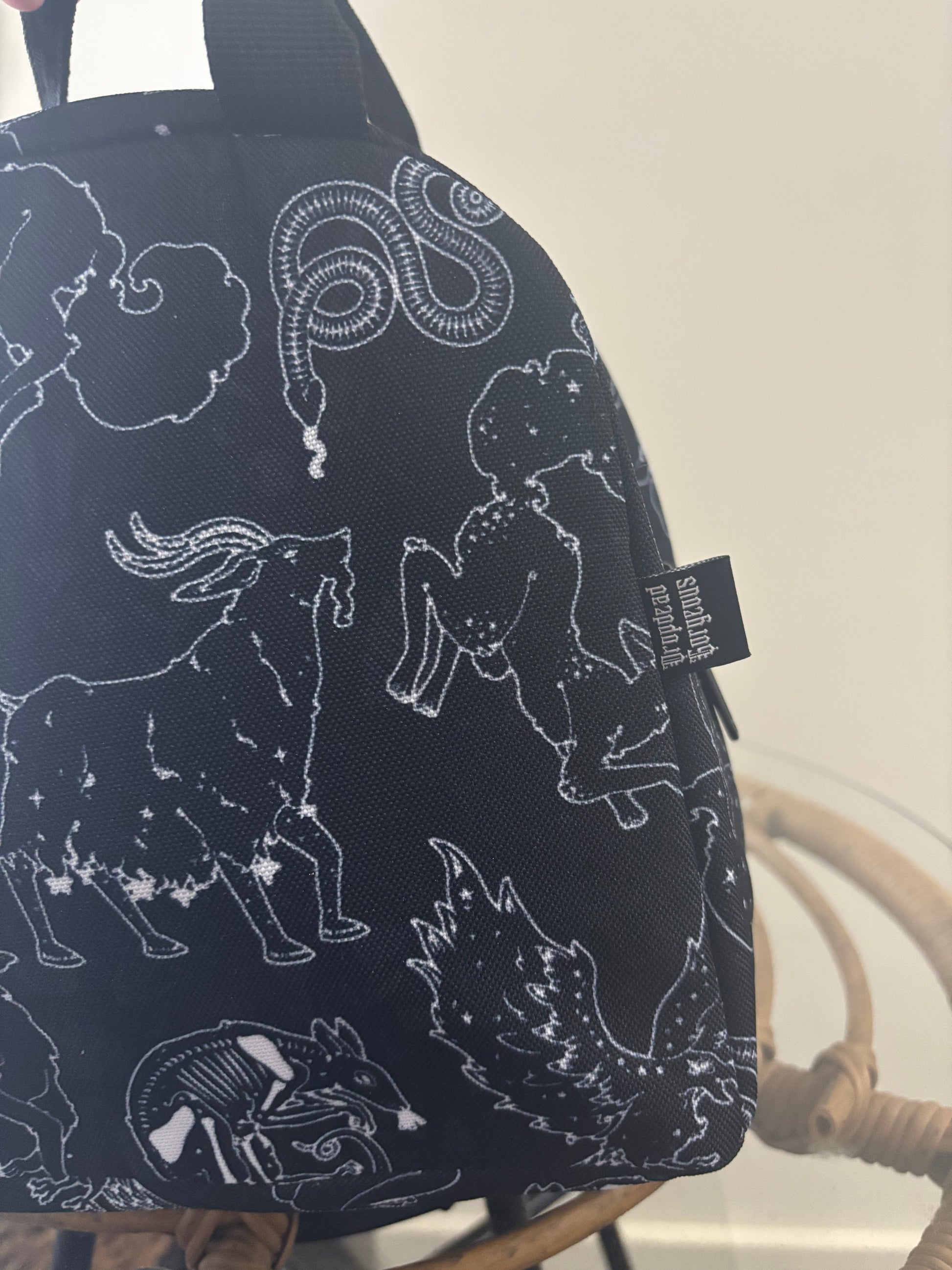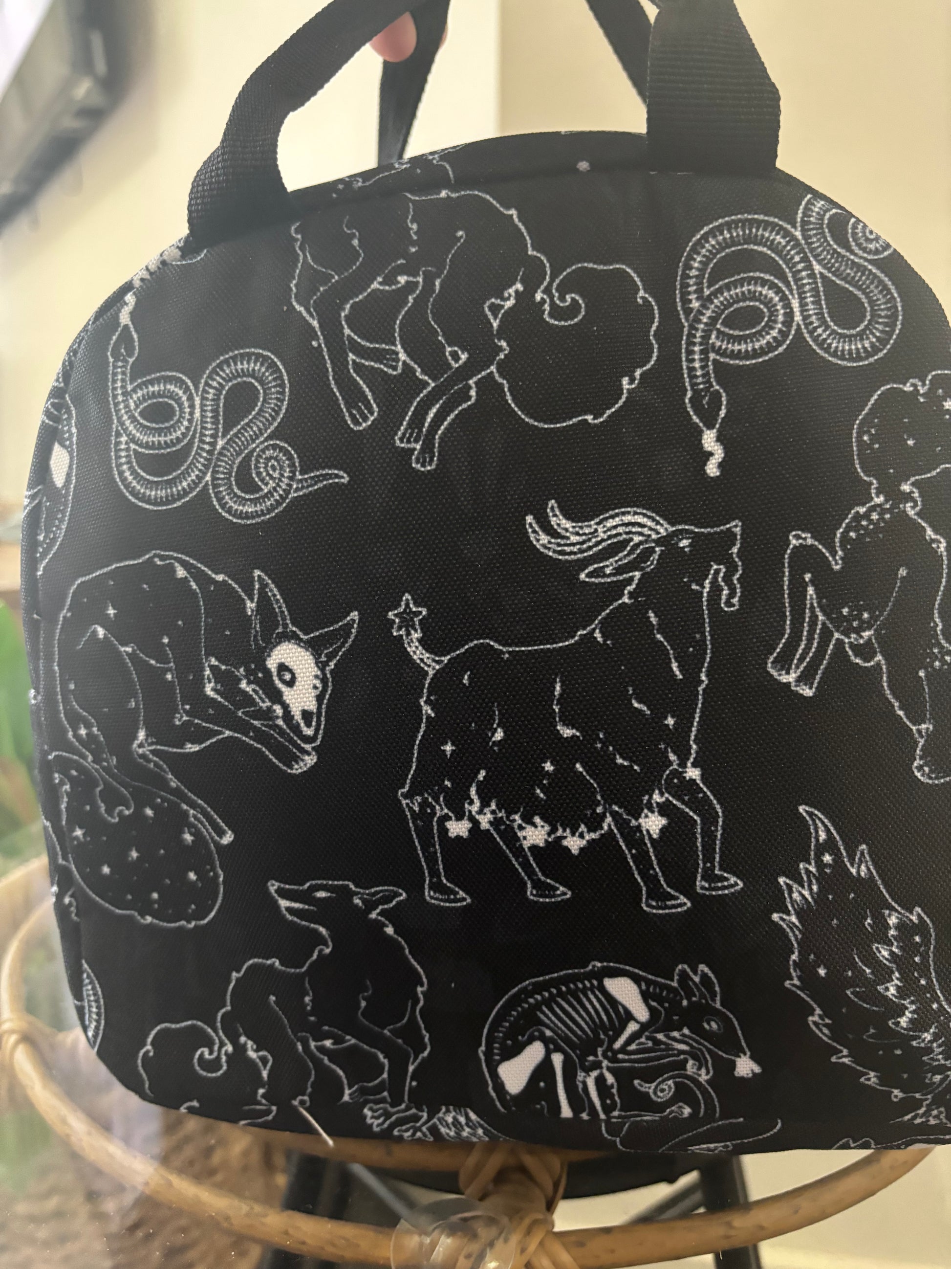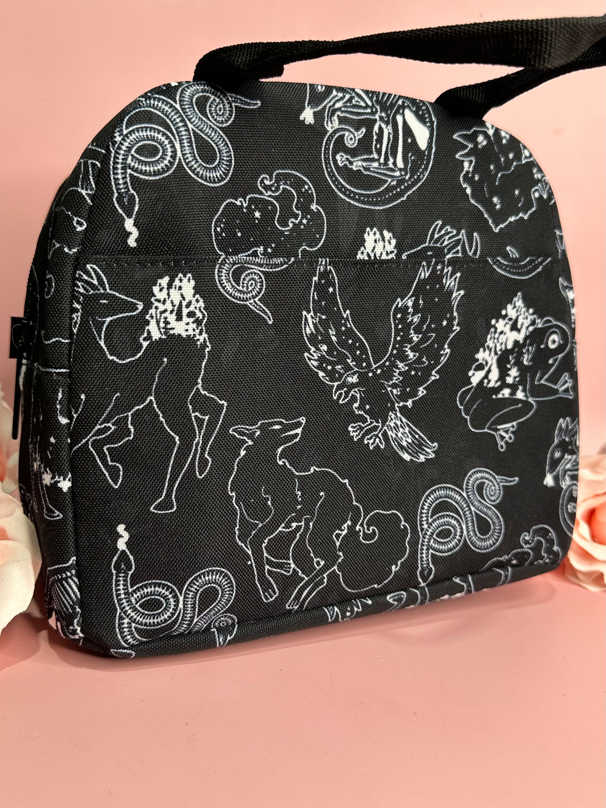 Spend your lunch time in magical style with our insulated, zipper top lunch bags! Heavy duty poly canvas construction with insulated lining to keep your lunch either cold as the night or hot as hell.