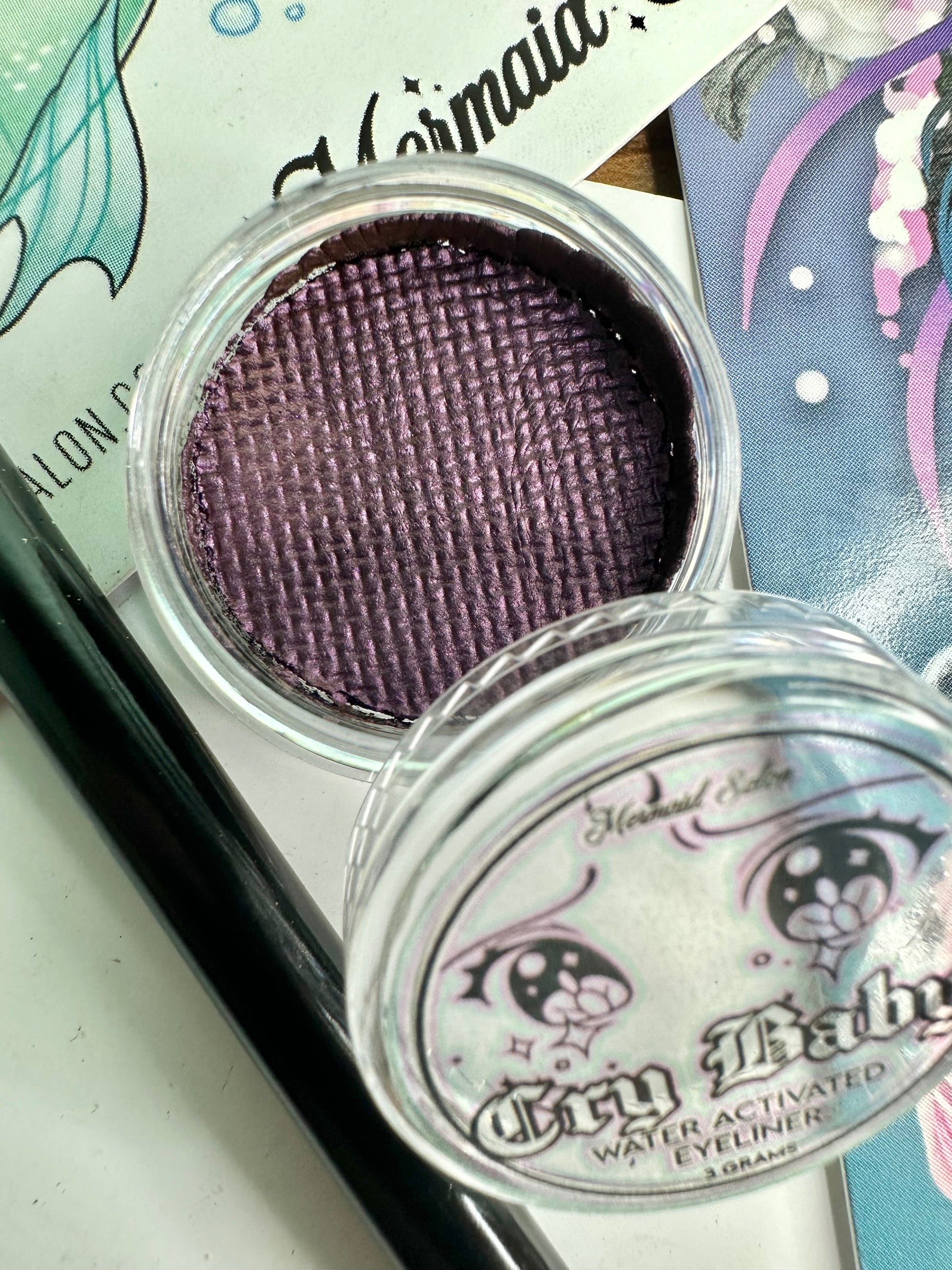 Mermaid Salon CryBaby Aqua-Liner is a traditional eyeliner / face paint hybrid. Cauldron smoke is a beige to lilac to aqua pastel shift.