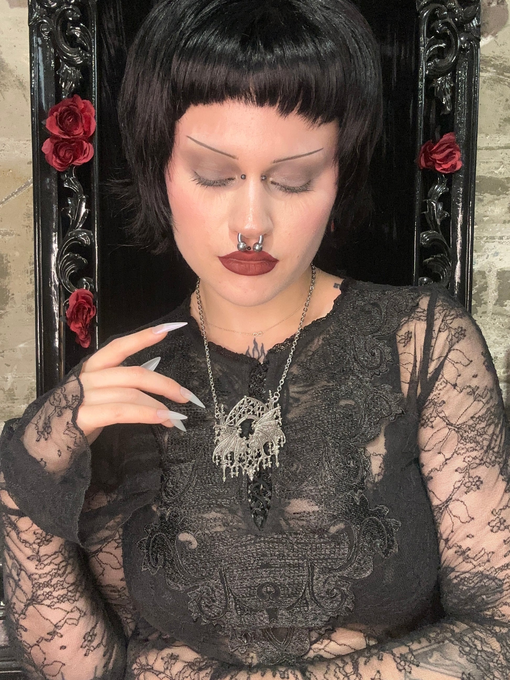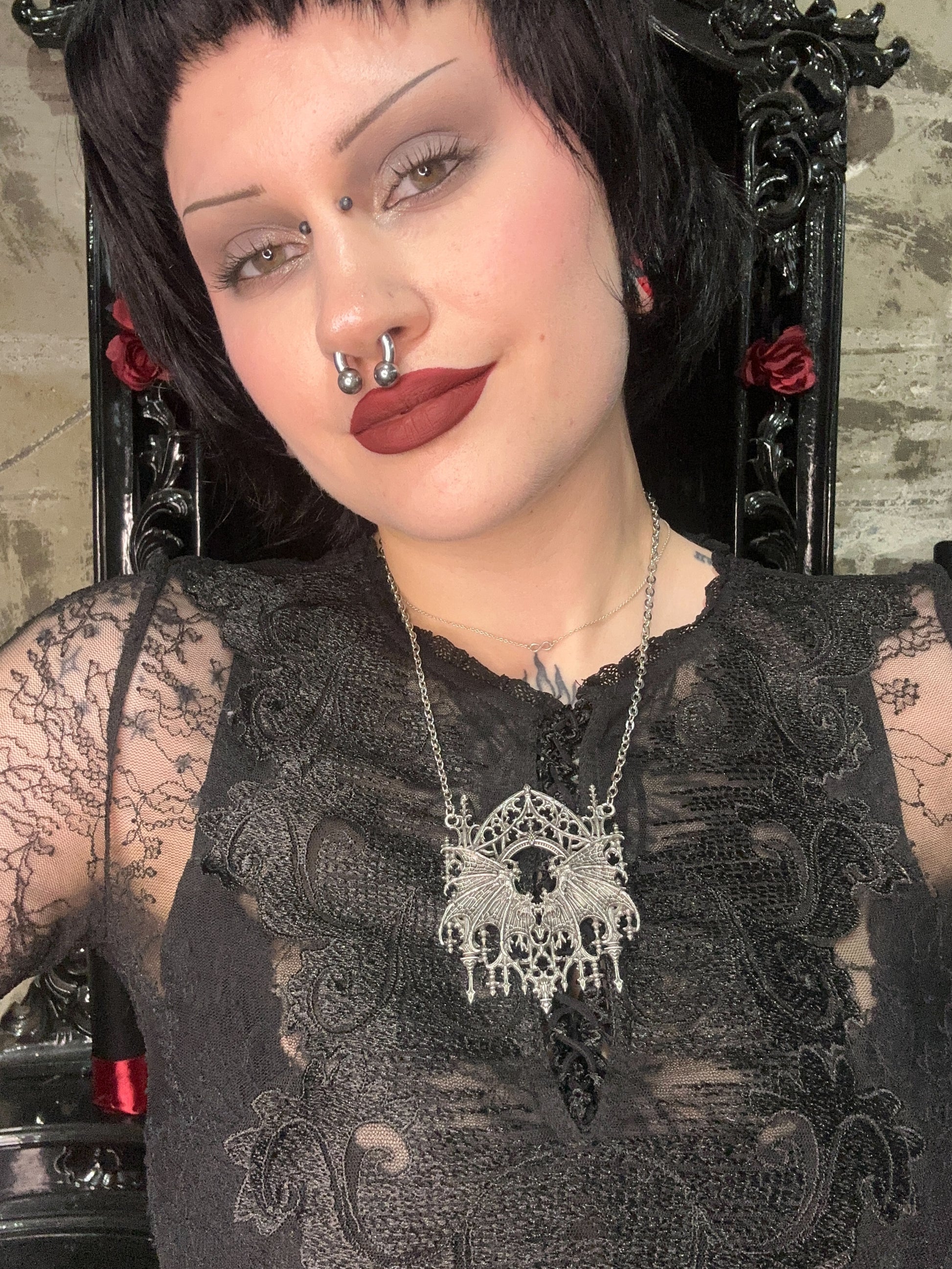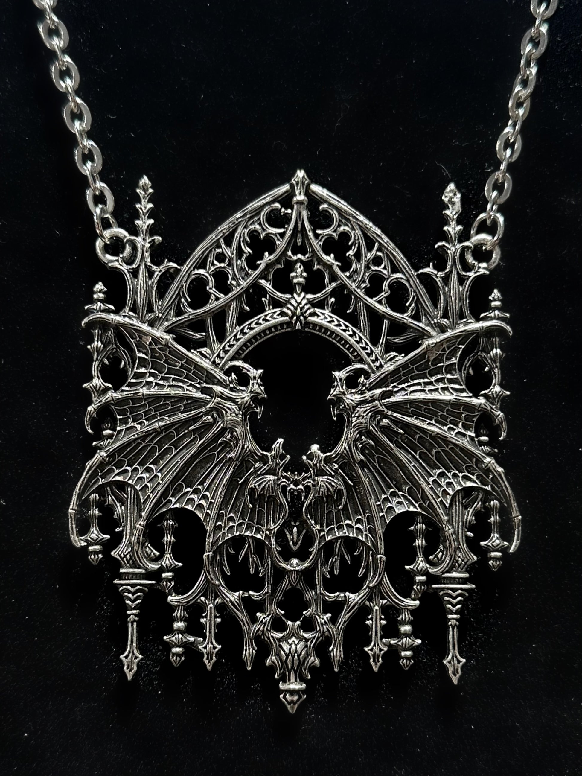 The gates to the garden - in necklace form! ethereal and spooky wings on a Gothic arch portal setting
