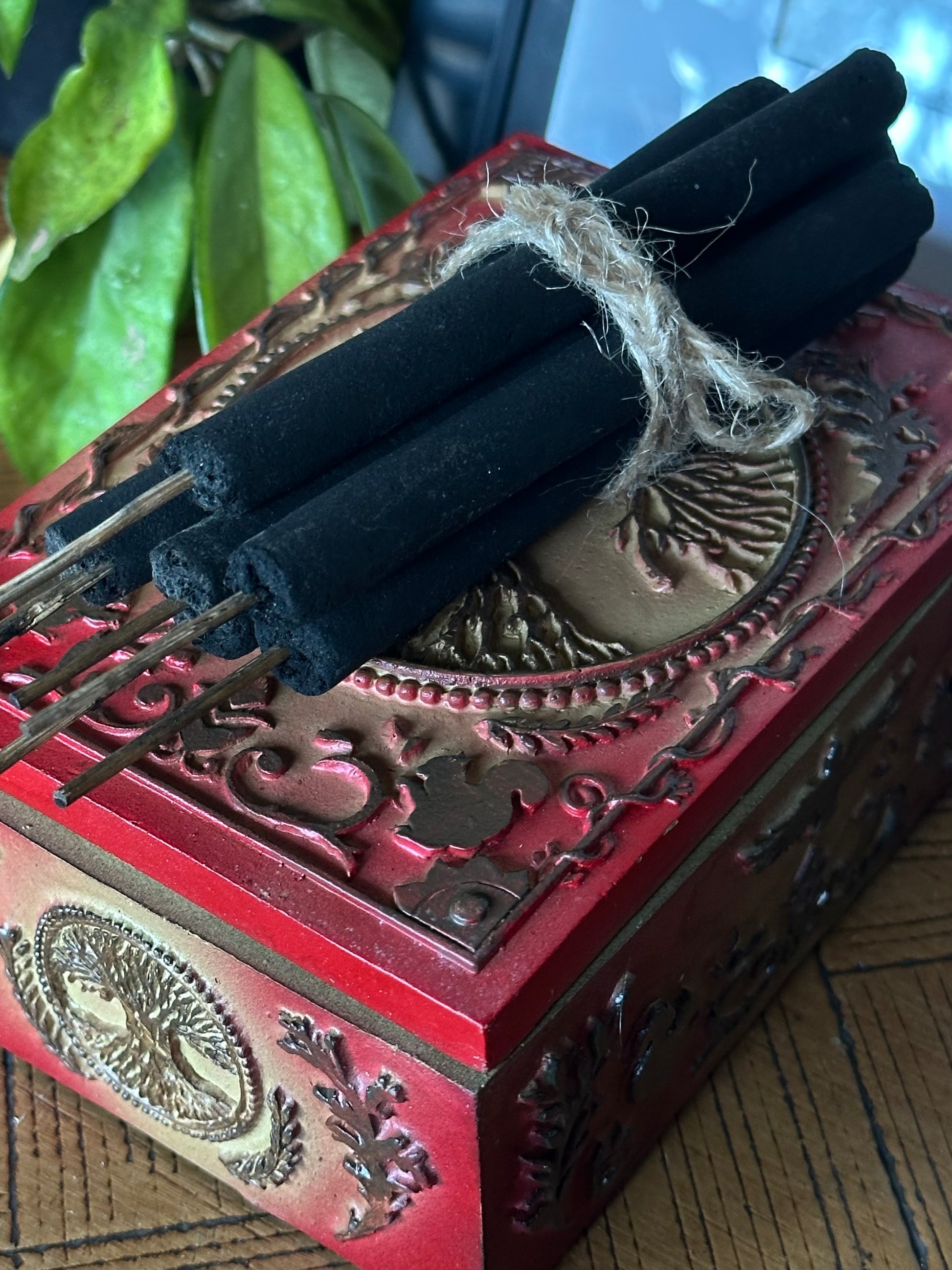 Tarot box perfect for your deck. Plus 6 incense sticks and a spot to burn them while you’re doing witchcraft.