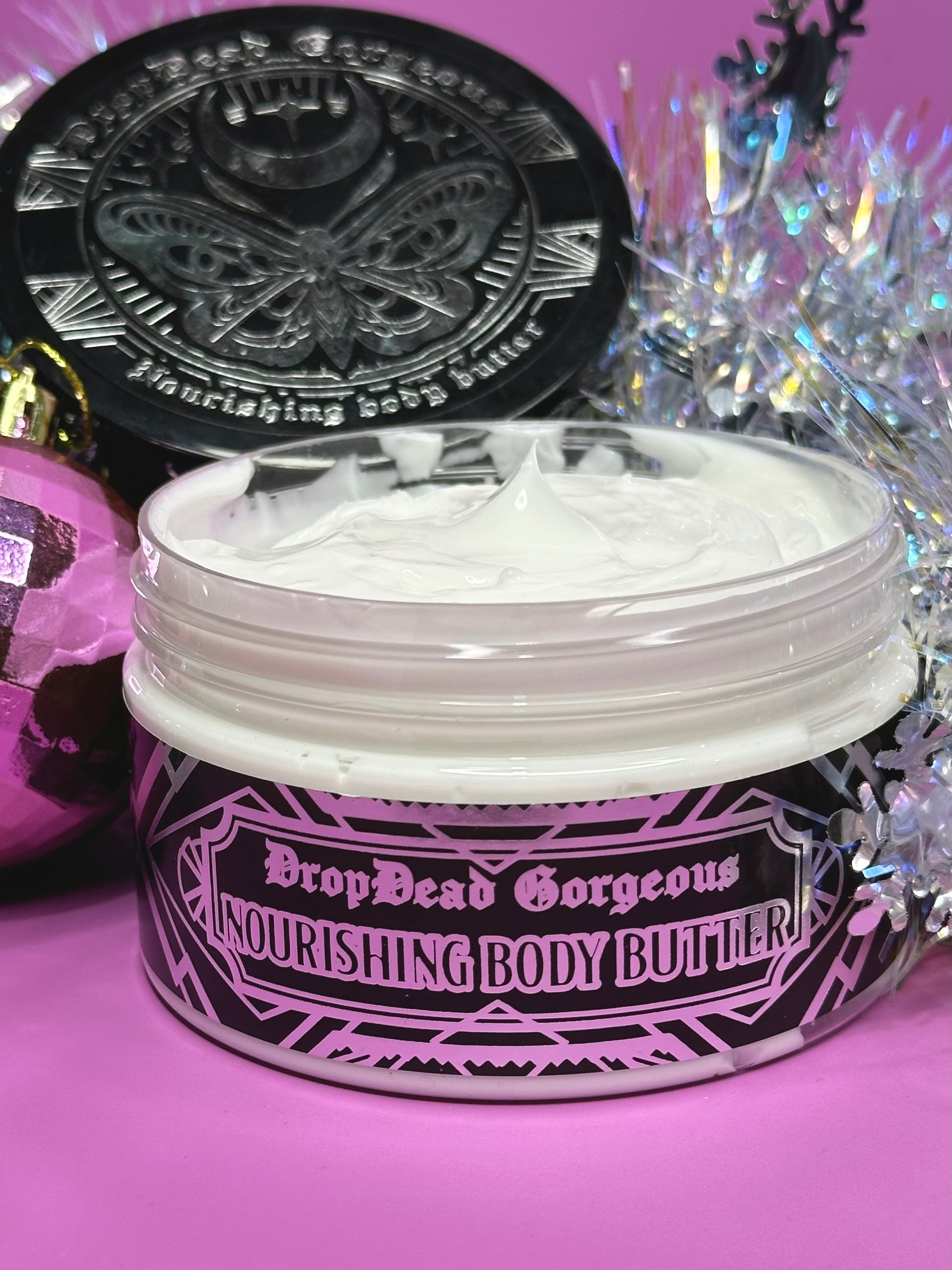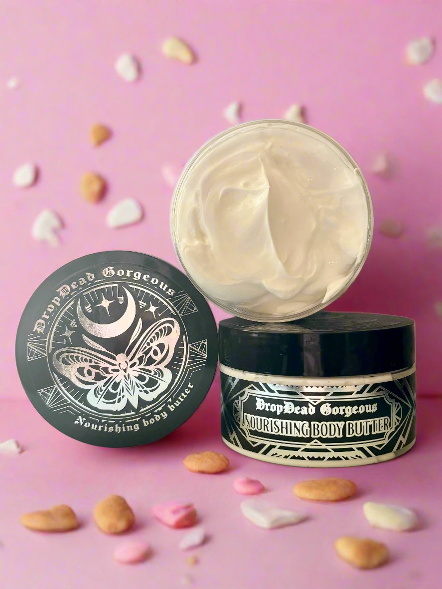 A smooth, creamy and nourishing blend of macadamia oil, vitamin E , sunflower oil and shea butter to hydrate and lock moisture into the skin.