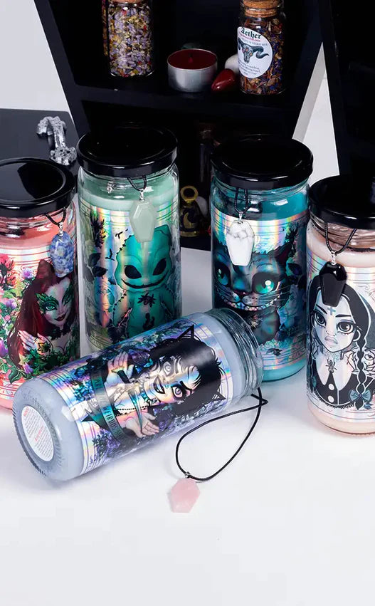 Unleash your inner witch with the I Bind You Nancy Coffin Candle with Pendant. This candle features a "we are the weirdos' mister" Nancy print, perfect for embracing your dark side. Whatever spell you cast, it will come with a side of warm, comforting gingerbread scent - yum. Guaranteed to make you wickedly happy!