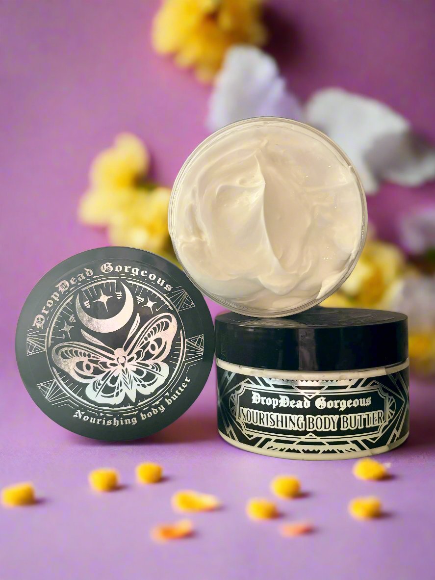 A smooth, creamy and nourishing blend of macadamia oil, vitamin E , sunflower oil and shea butter to hydrate and lock moisture into the skin.