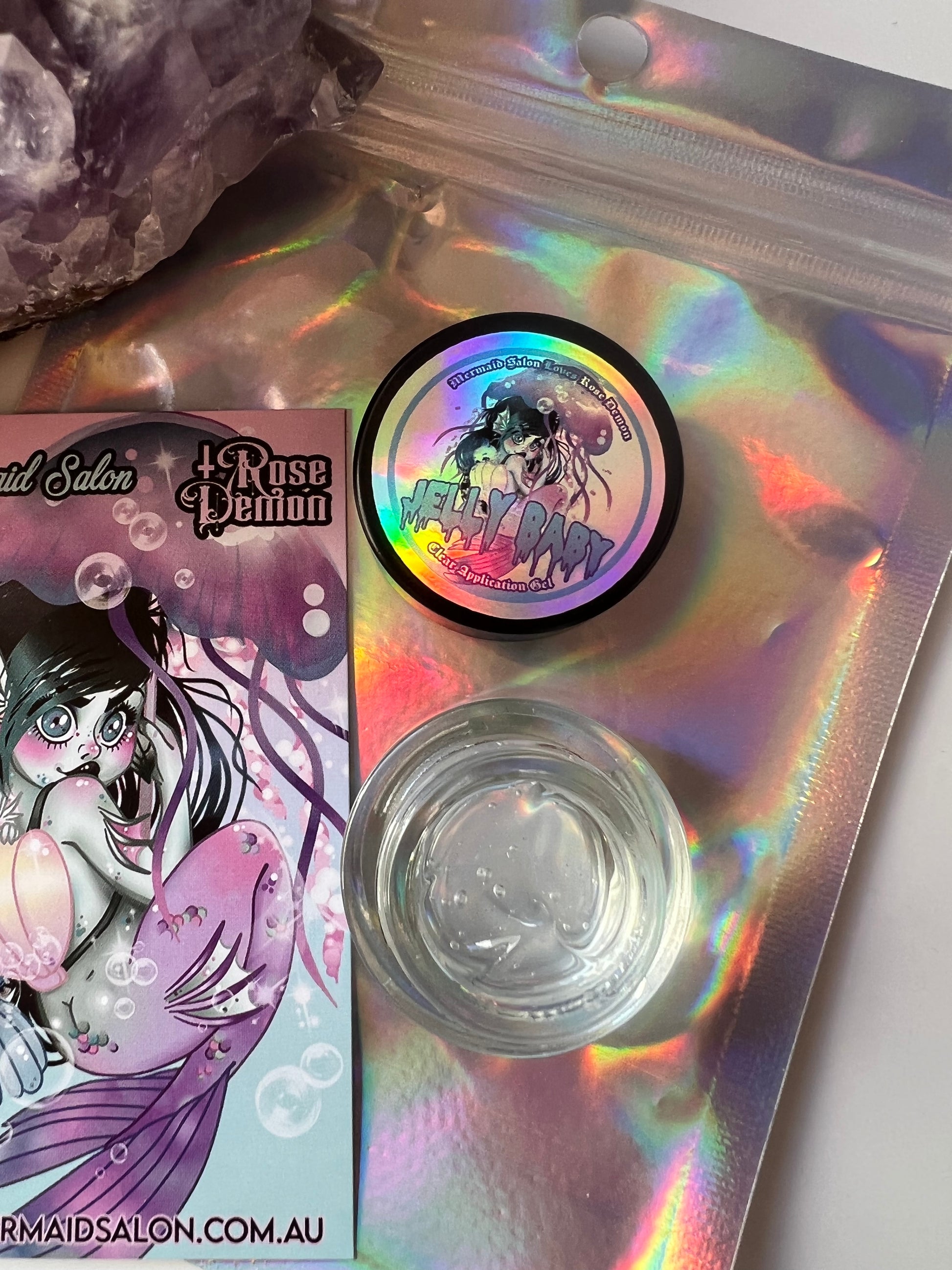 Either way will adhere your jelly baby crystal flakes to skin for a dazzling, colour shift effect.
