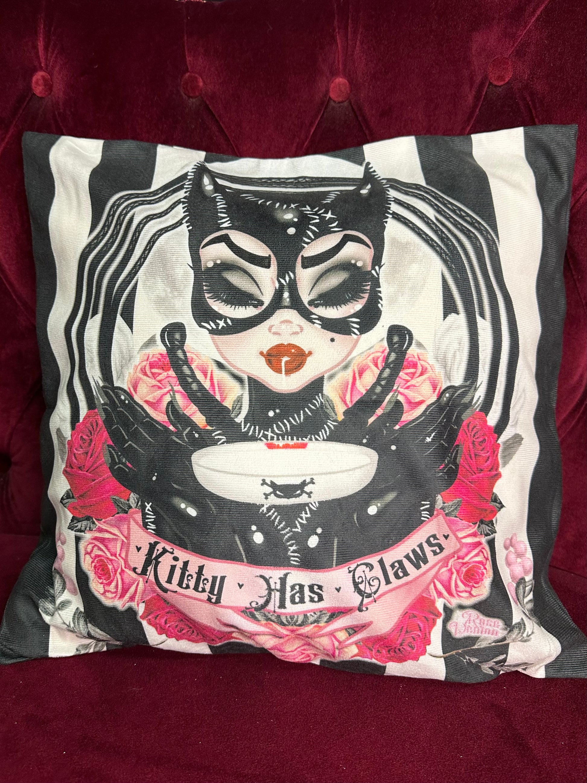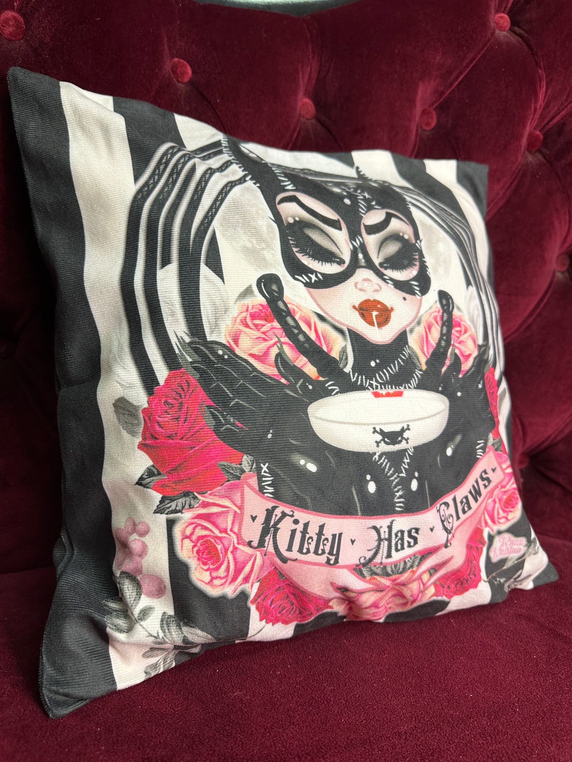 KITTY HAS CLAWS - Rose Demon Cushion Cover