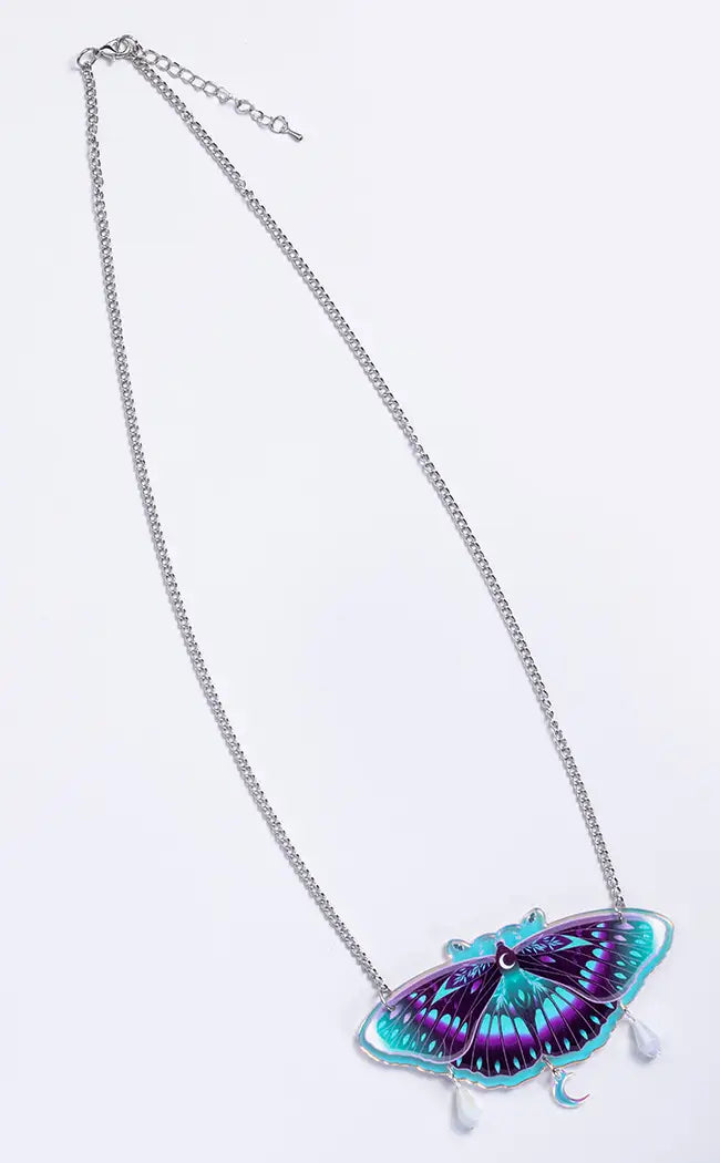 Flutter about town with this gorgeous La Bella Luna Dew Drop Necklace. Bursting with bright blues and purples, this beautiful necklace dances amongst a beautiful crescent moon & holographic gems.