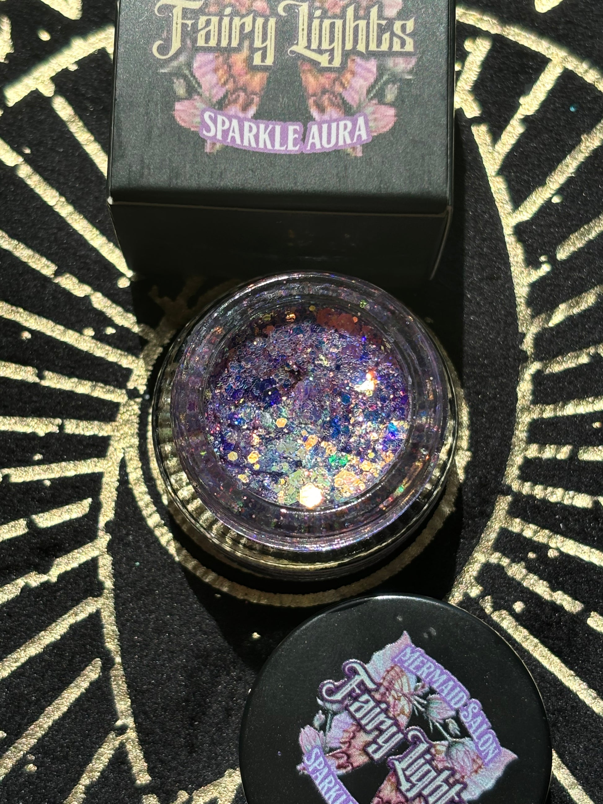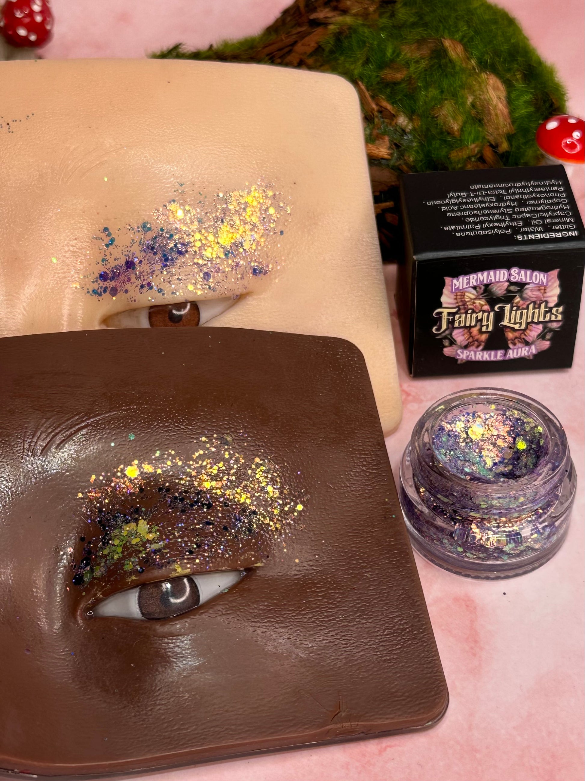 Add a dash of whimsy to your look with mermaid salon fairy lights sparkle aura balm!