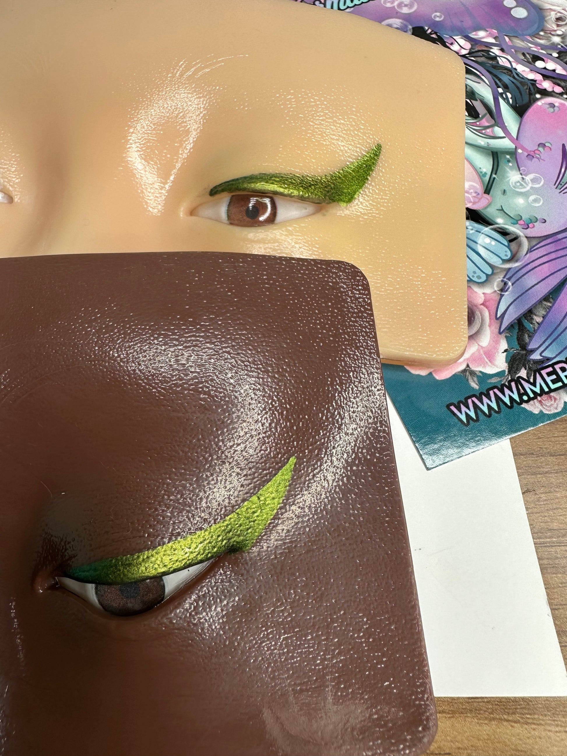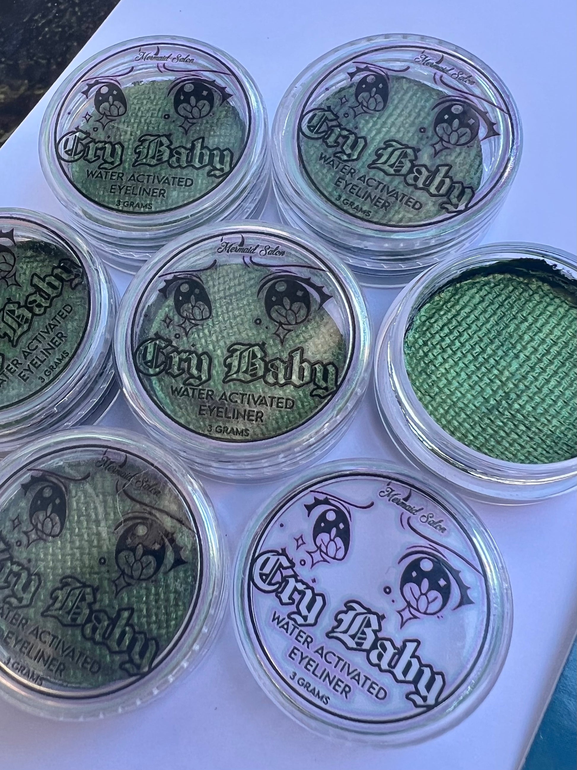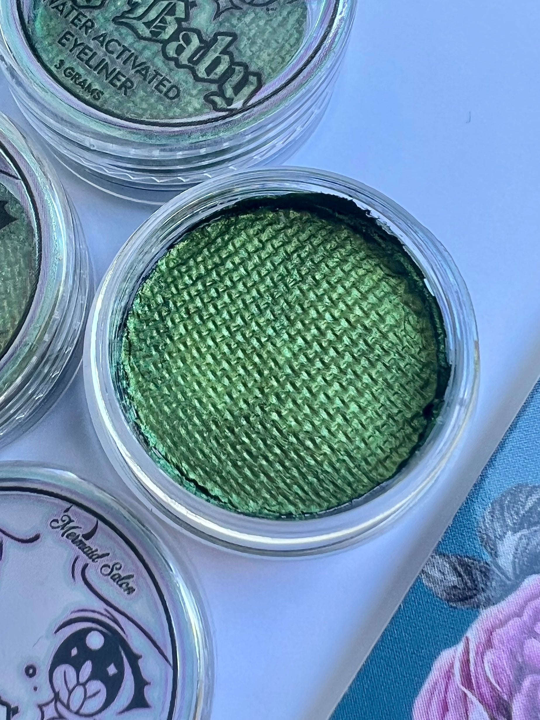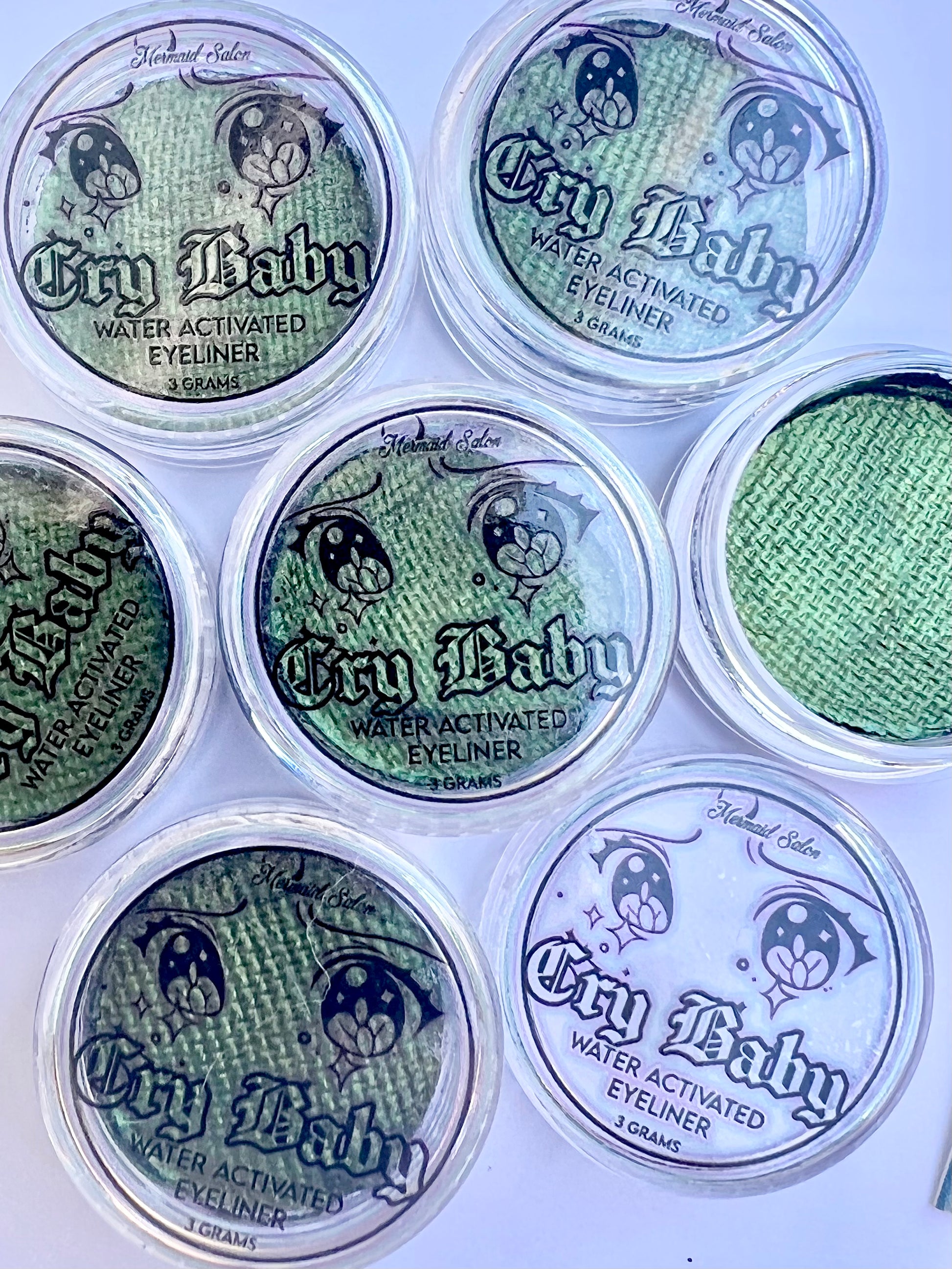 Mermaid Salon CryBaby Aqua-Liner is a traditional eyeliner / face paint hybrid. Cauldron smoke is a beige to lilac to aqua pastel shift.