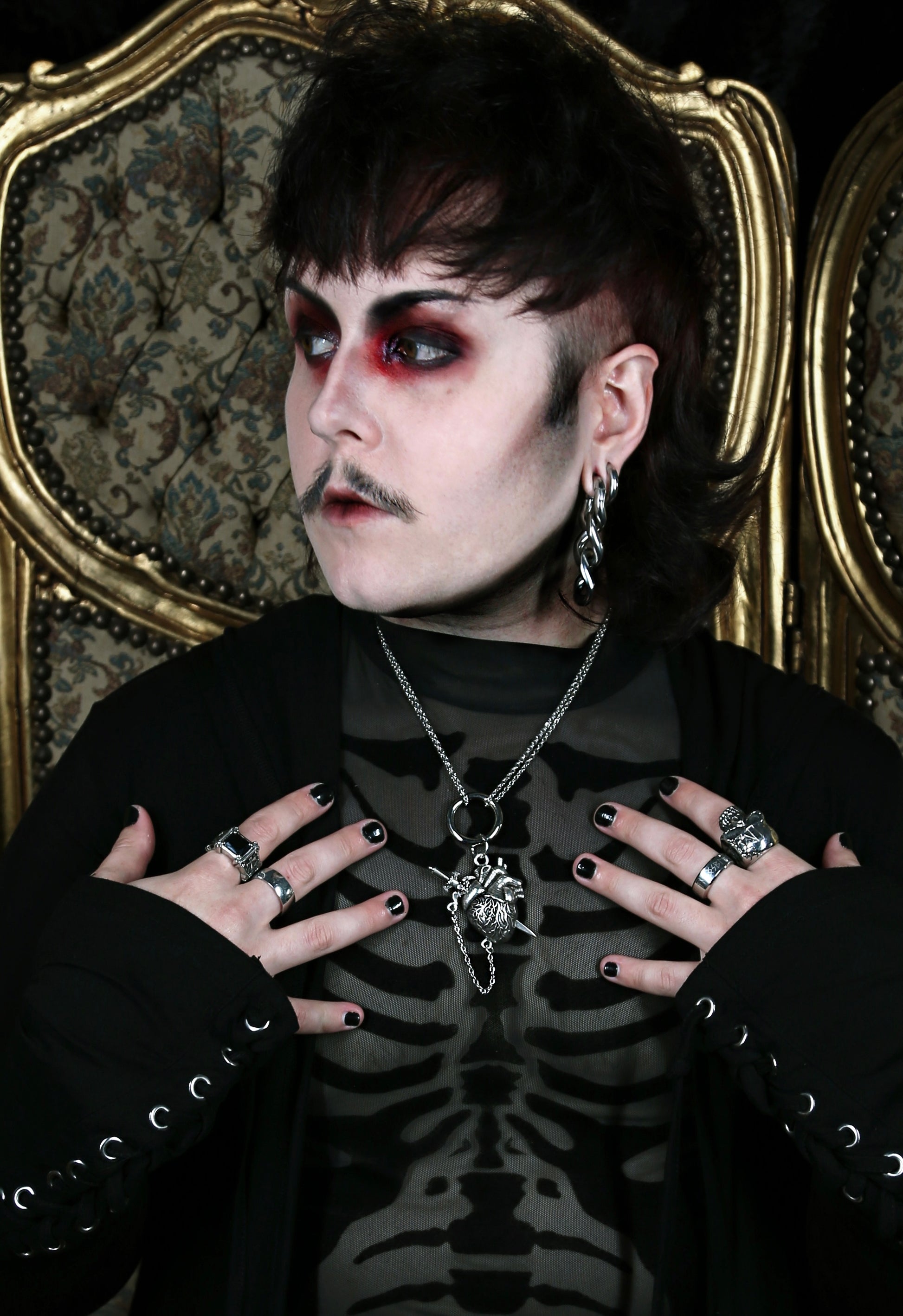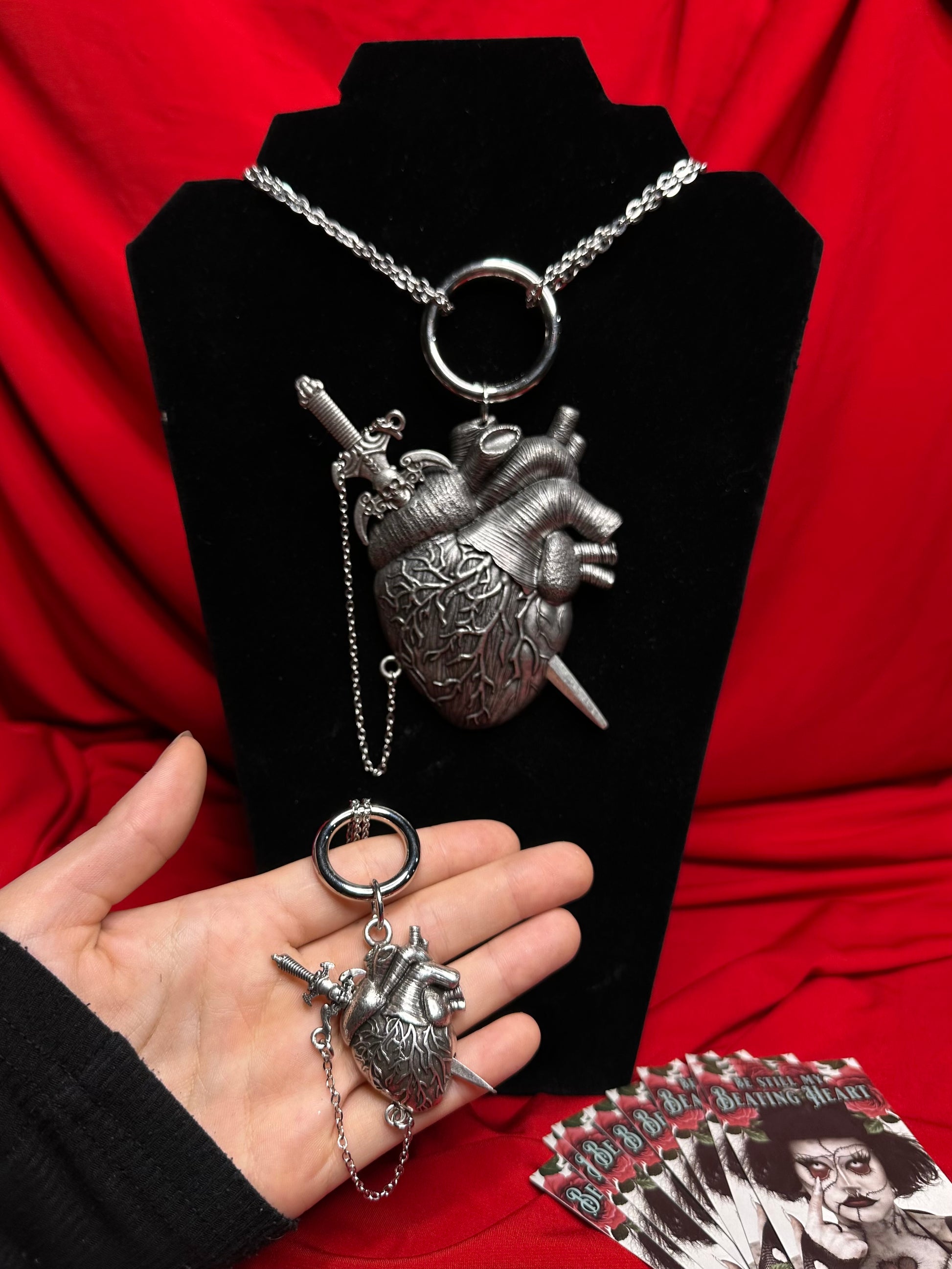 The iconic necklace that stopped goth-tok. We have all felt this way and now you can wear your betrayed heart where everyone can see. This stunning interactive statement piece features a dagger that can be removed from the heart. this is a miniature, wearable replica of the original, cast in zinc alloy with a stainless steel chain