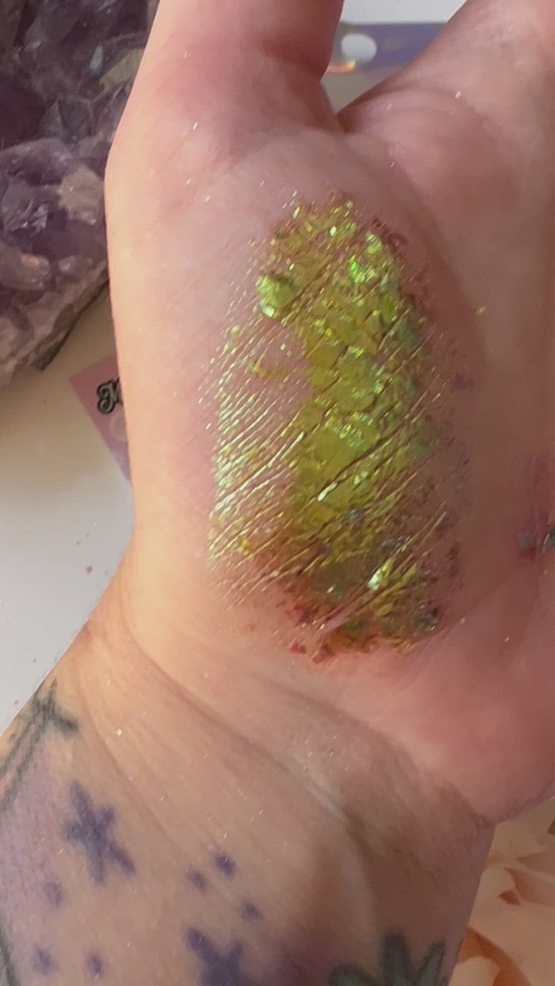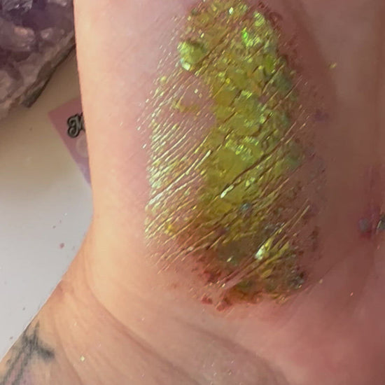 alternatively, apply application gel directly to skin, allow to turn slightly tacky after a few second and pat iridescent flakes over the top.