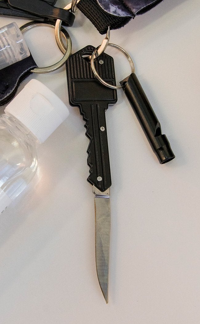 Key shaped letter opener (can be removed) - disguised as a regular house key - this letter opener has 2 hinges so it cannot be flicked or fall open. It must be intentionally opened with 2 hands. There is no sharp edge on this device, it does, however have a point which is perfect for opening letters - just an added courtesy - you won’t get this through an airport so best to leave it at home for that occasion.