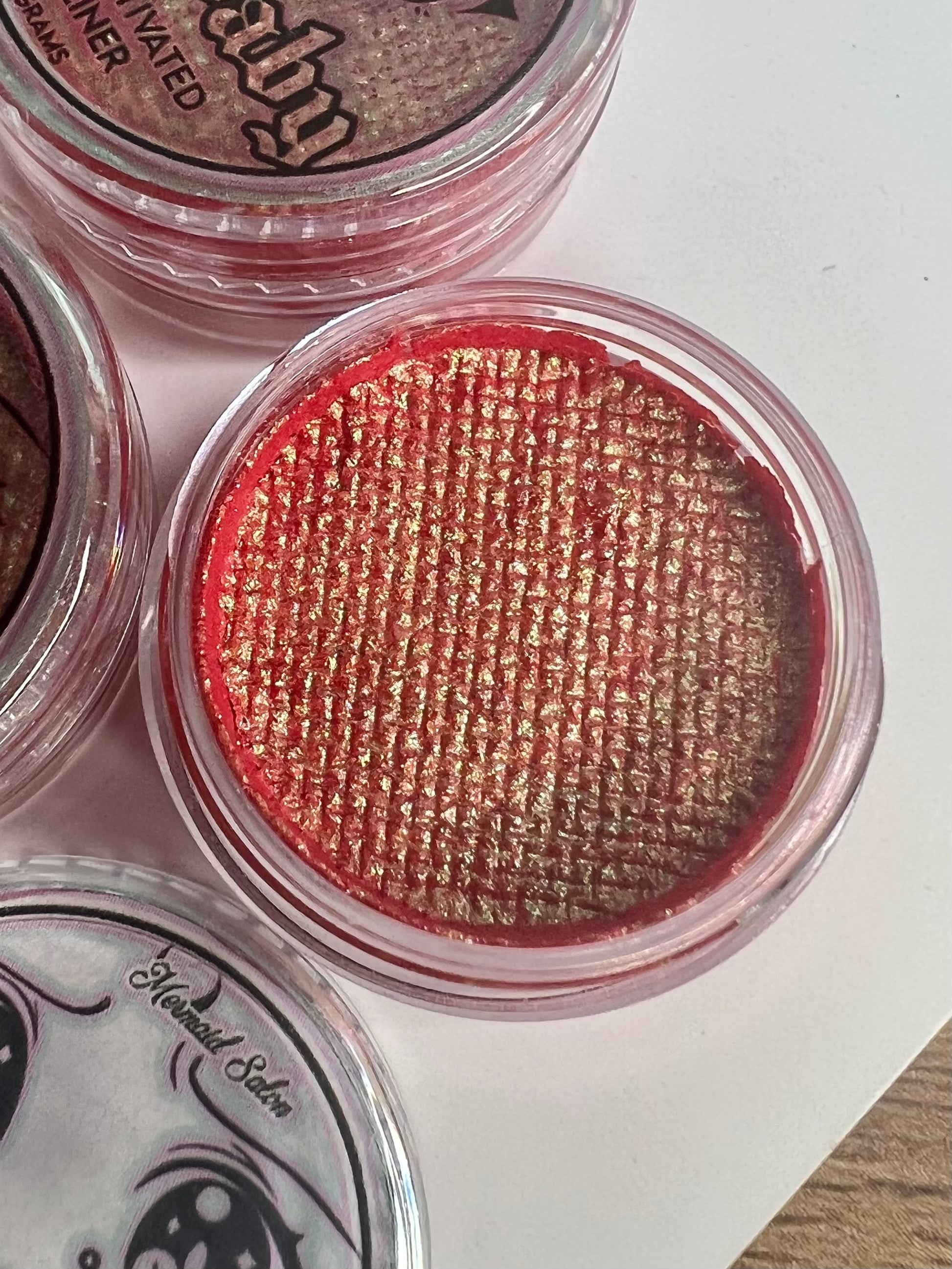 Use a wet brush of desired size to mix water with the pigment cake to produce a creamy that is ready to apply! It can be used on your eyelid as a liner or as a faceaint.