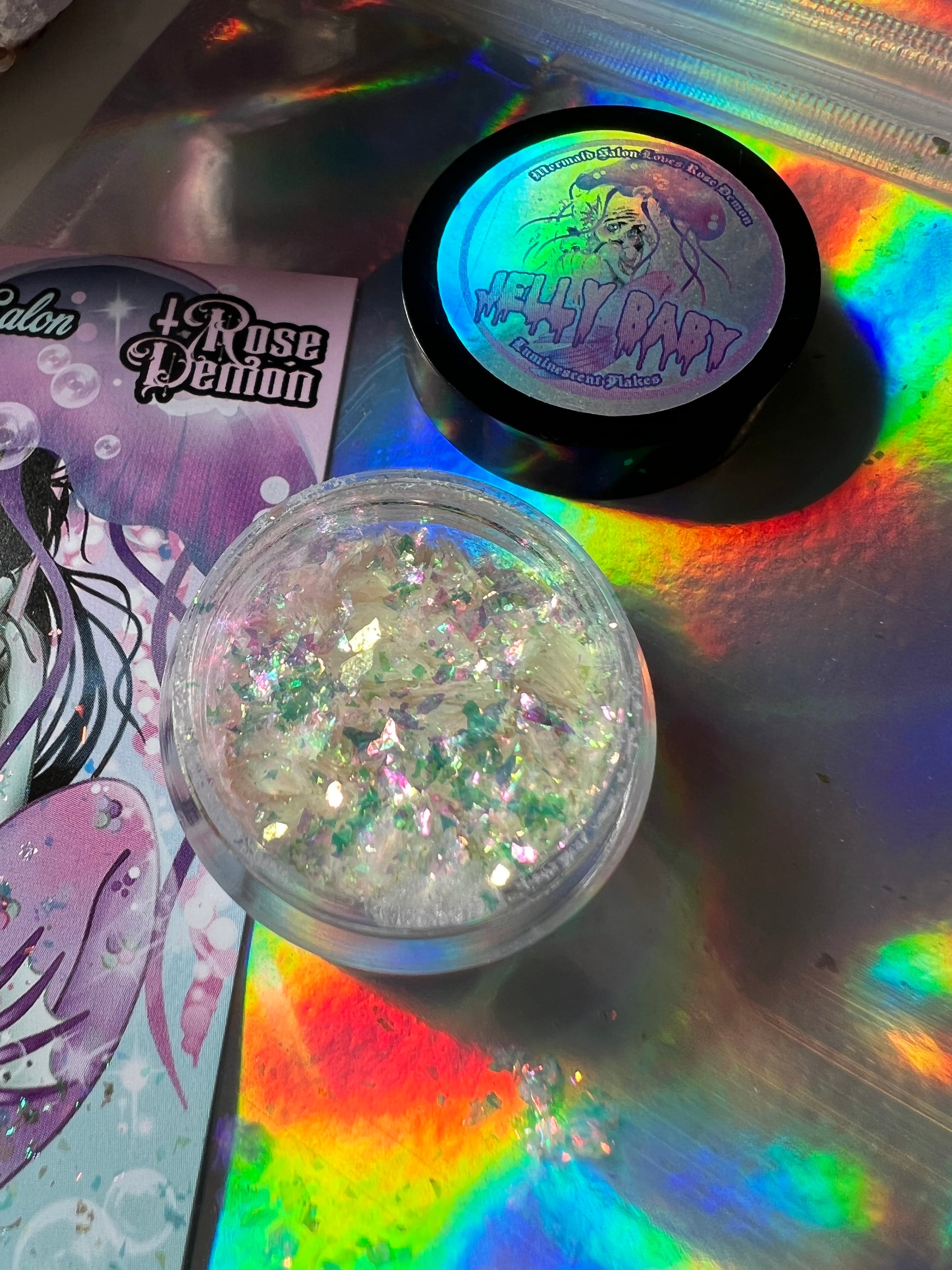 use: Mix jelly baby flakes with application gel to create a colour shift highlight like no other.