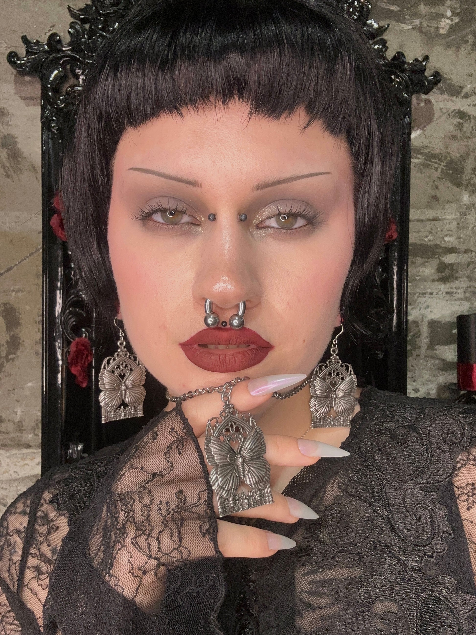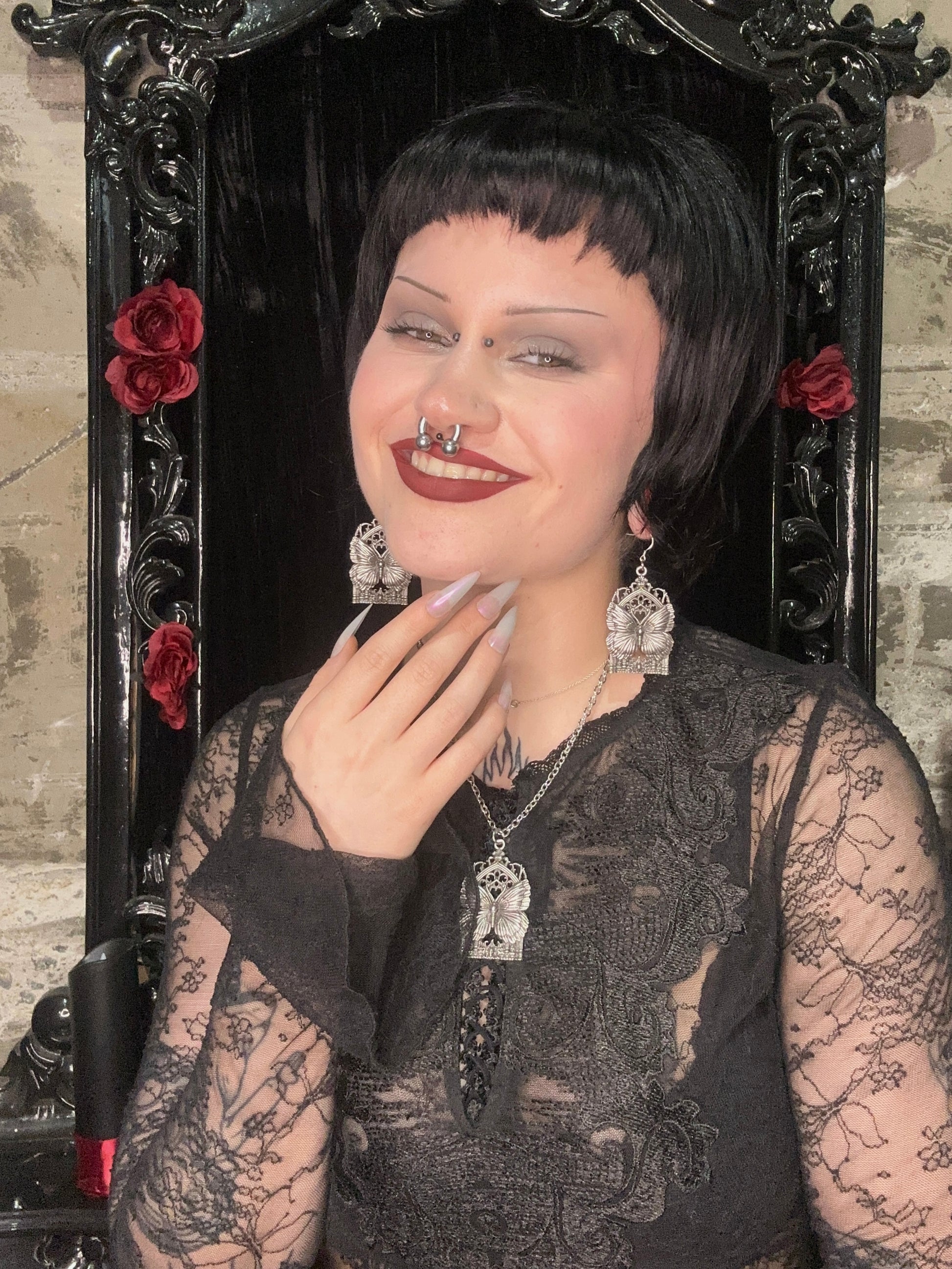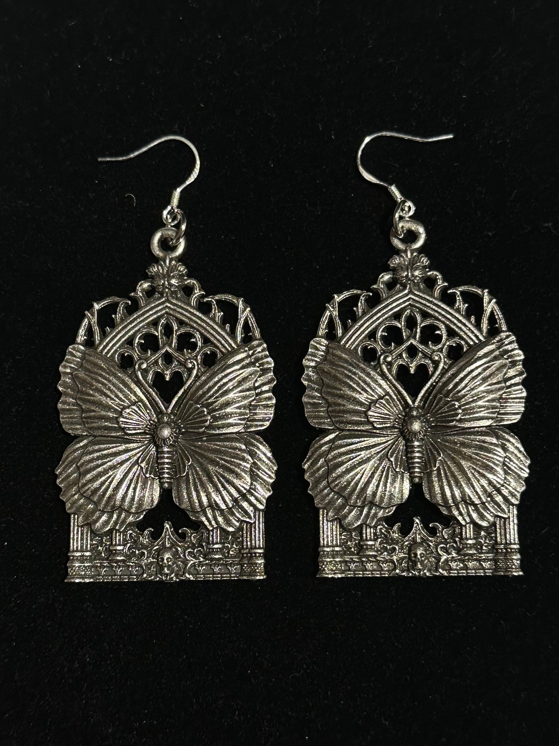 A gorgeous Butterfly blooms into its new life and new self adorned with a gothic cathedral frame.