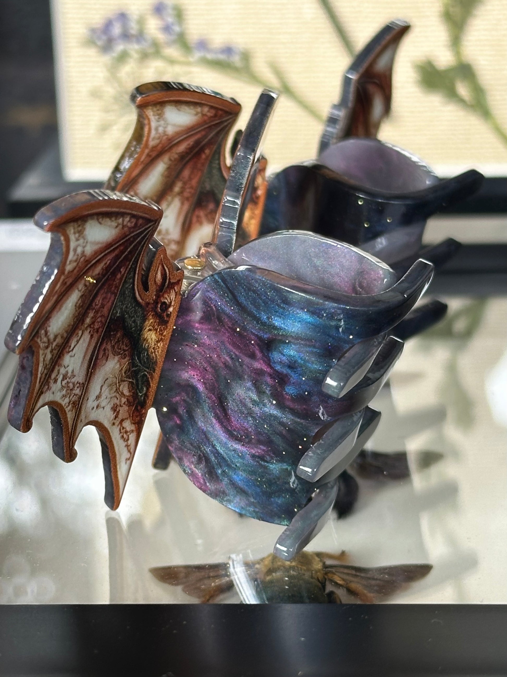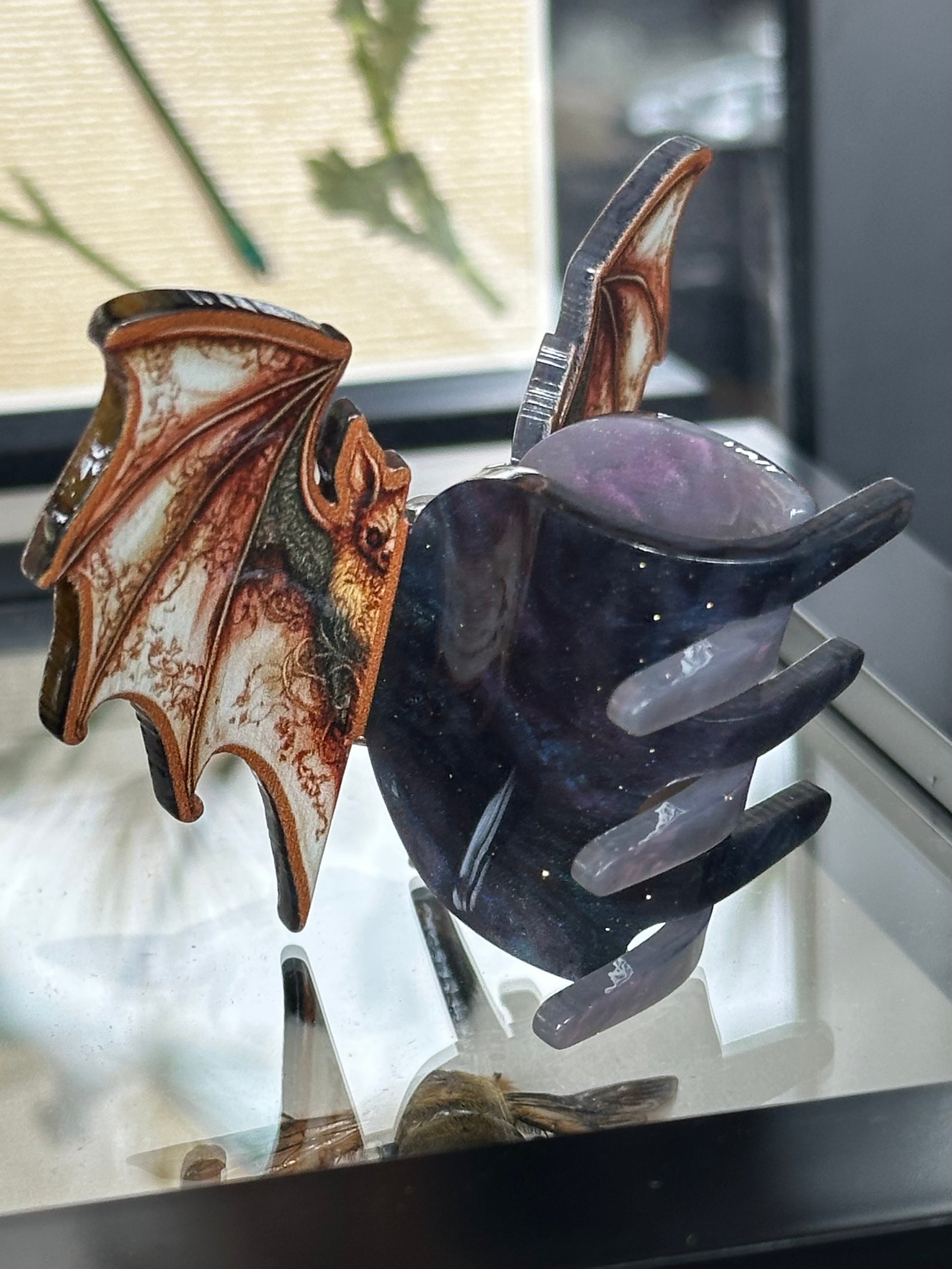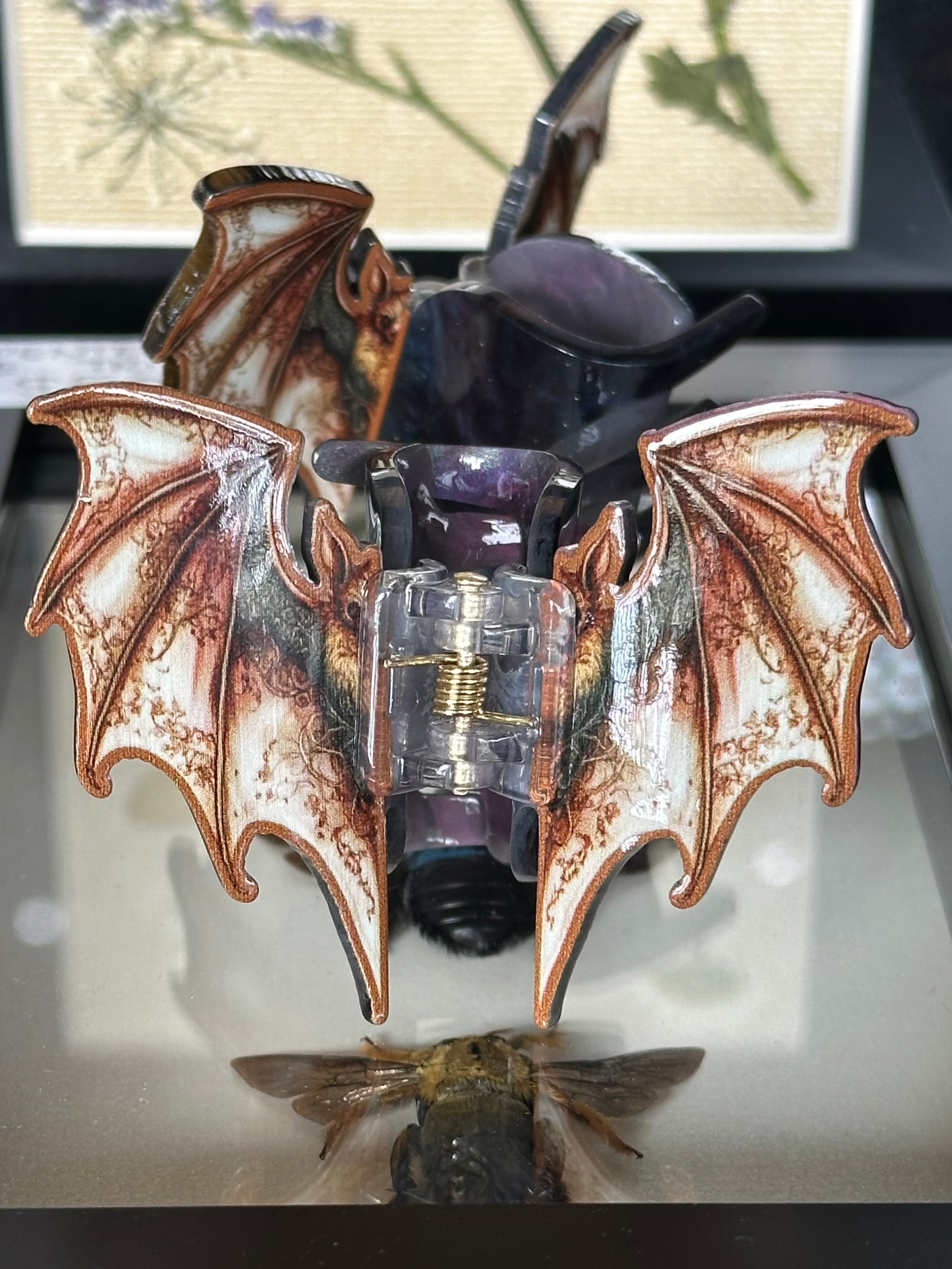 This set of flying fox clips are made for the strange & unusual. Purposefully made in tones of brown to not clash with darkness, these batterfly clips are gorgeous!