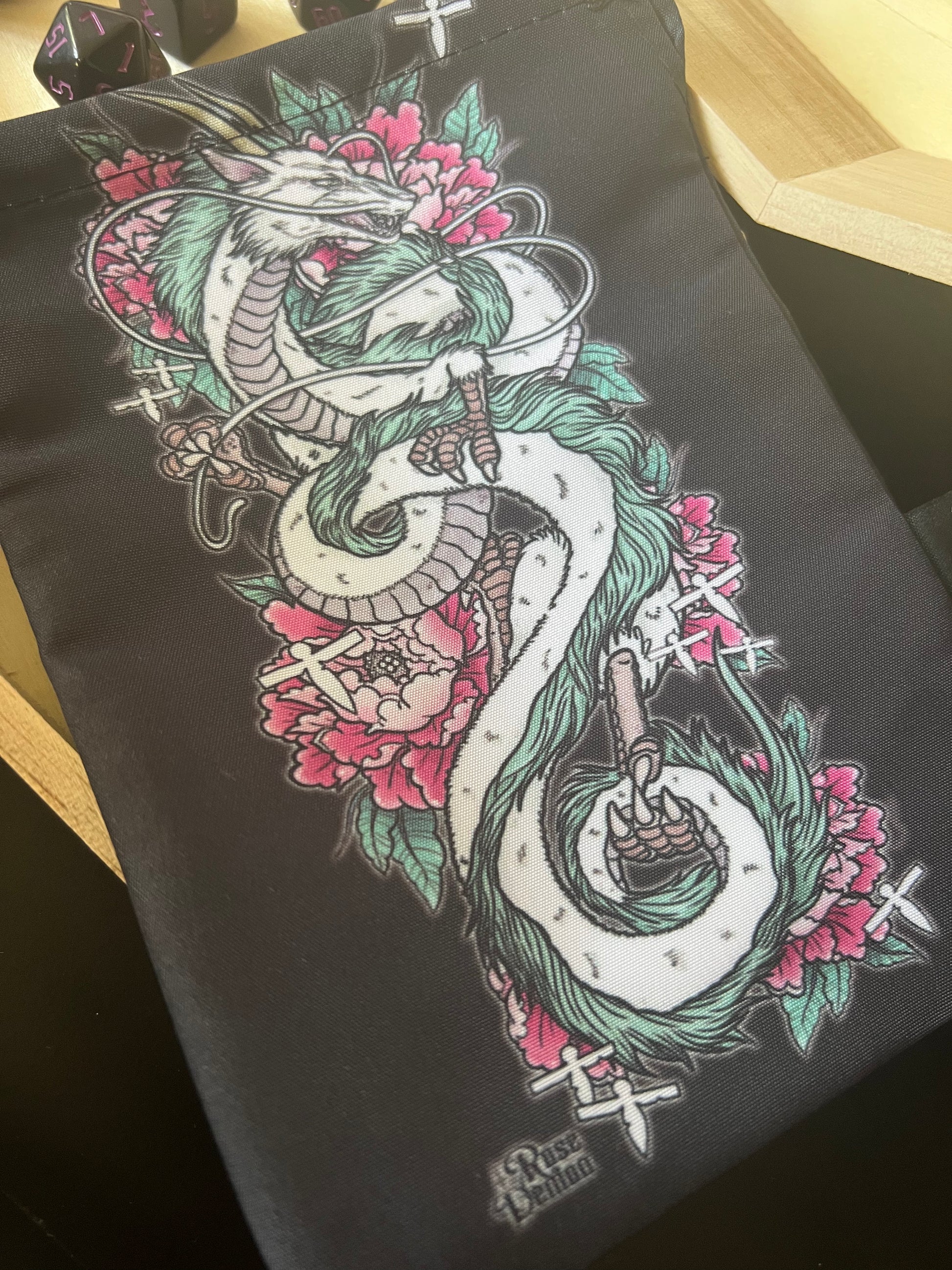 the set is completed and contained by a drawstring pouch with art by the amazing Rose Demon.