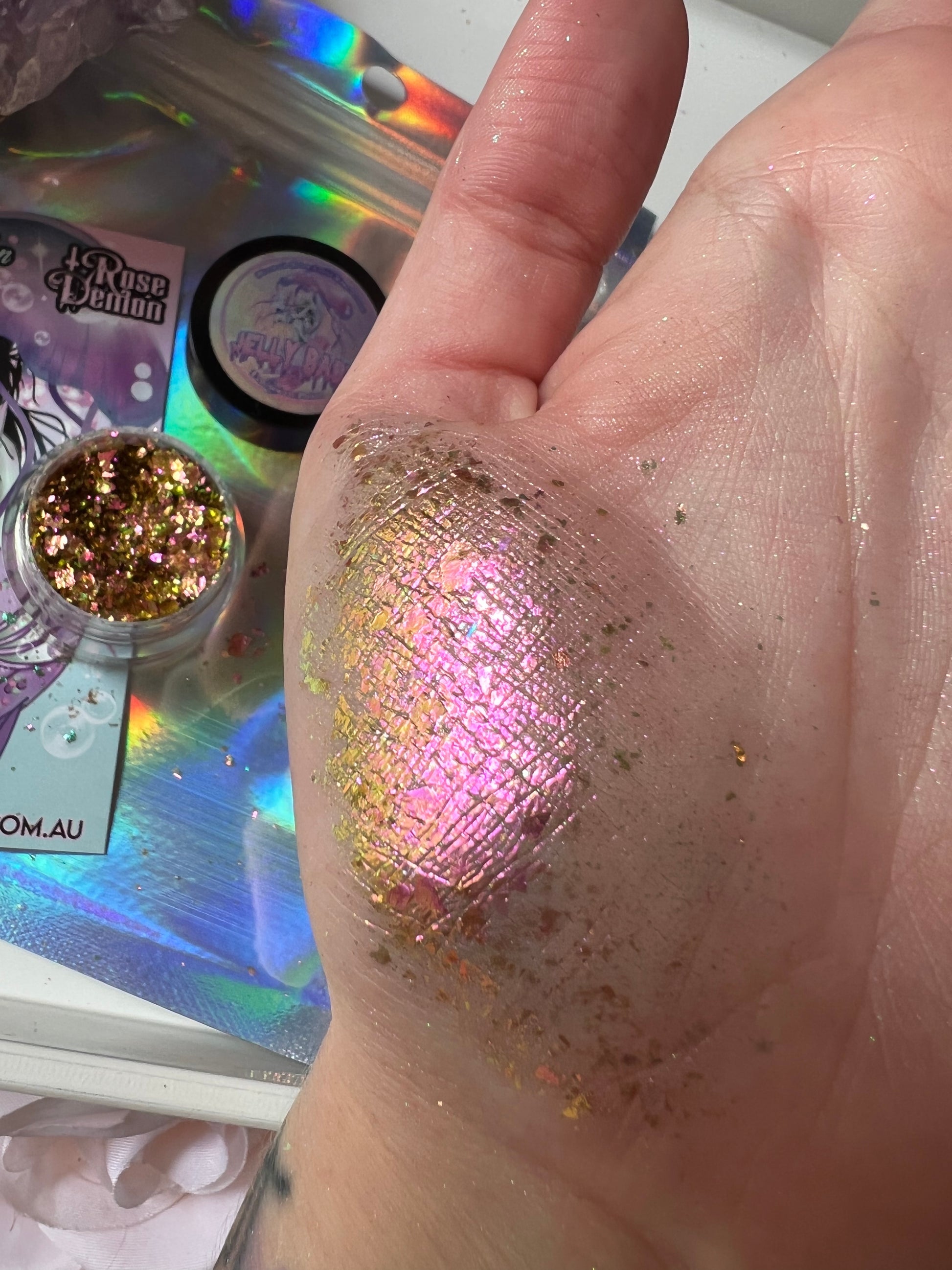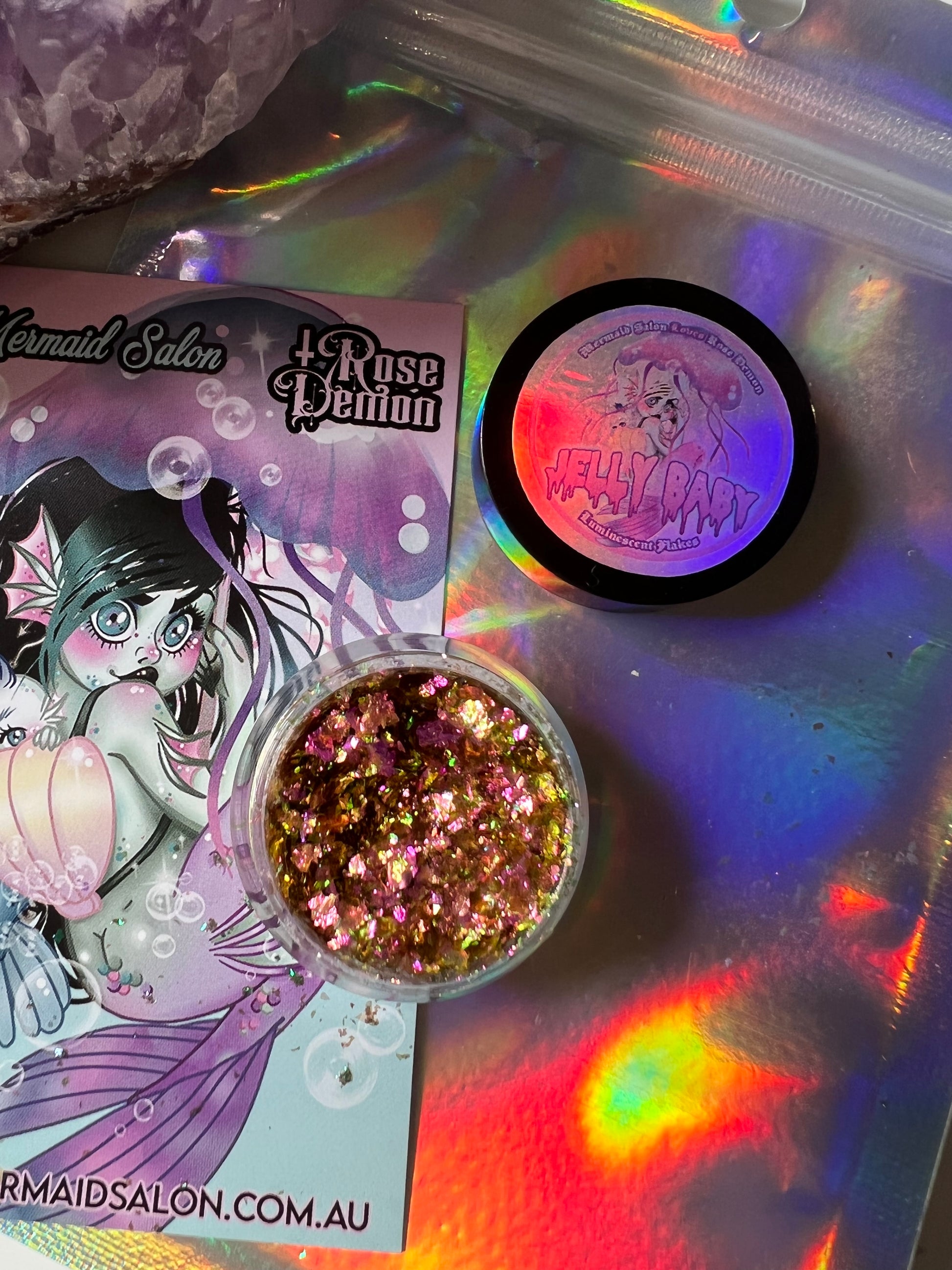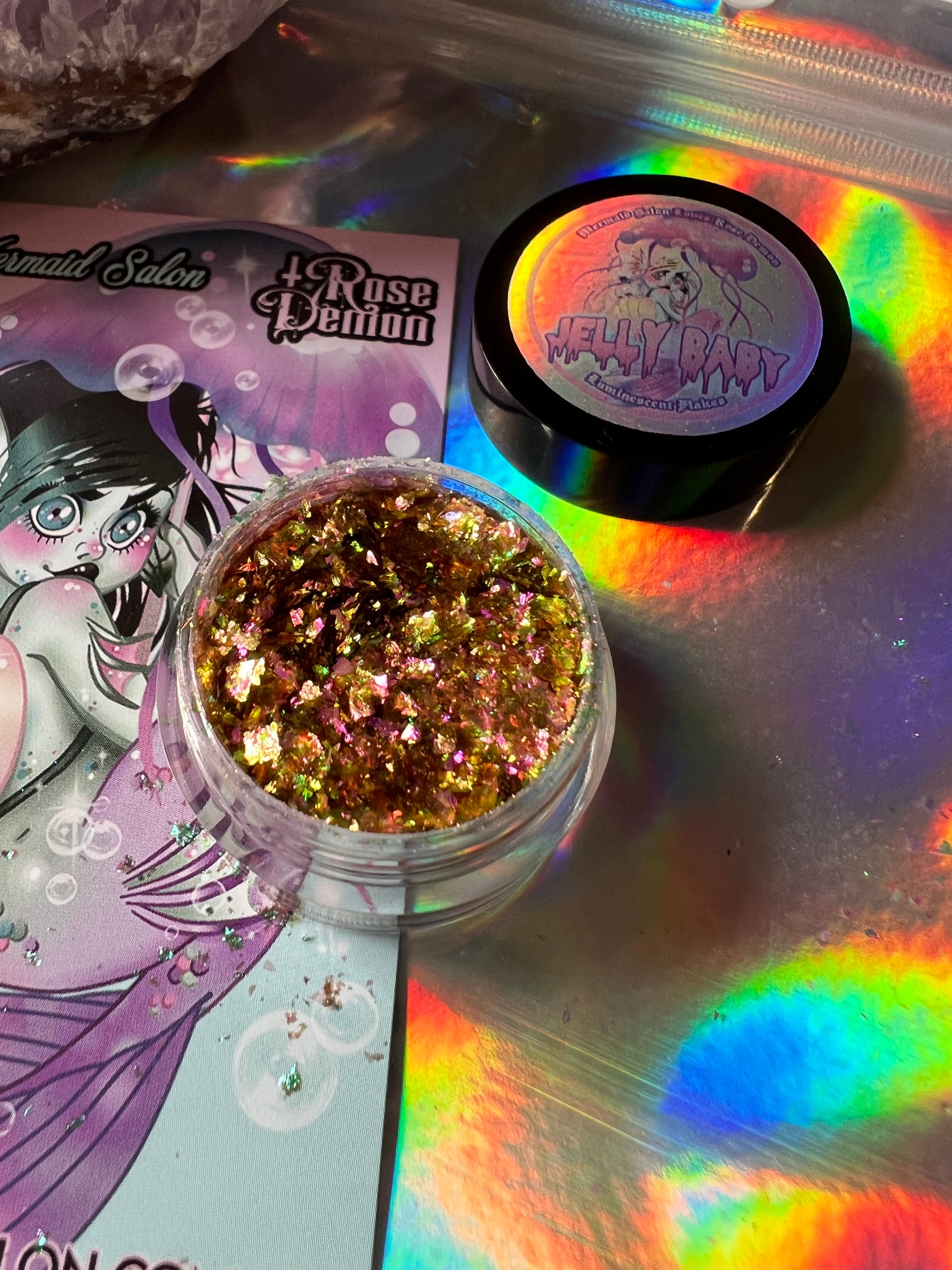 use: Mix jelly baby flakes with application gel to create a colour shift highlight like no other.