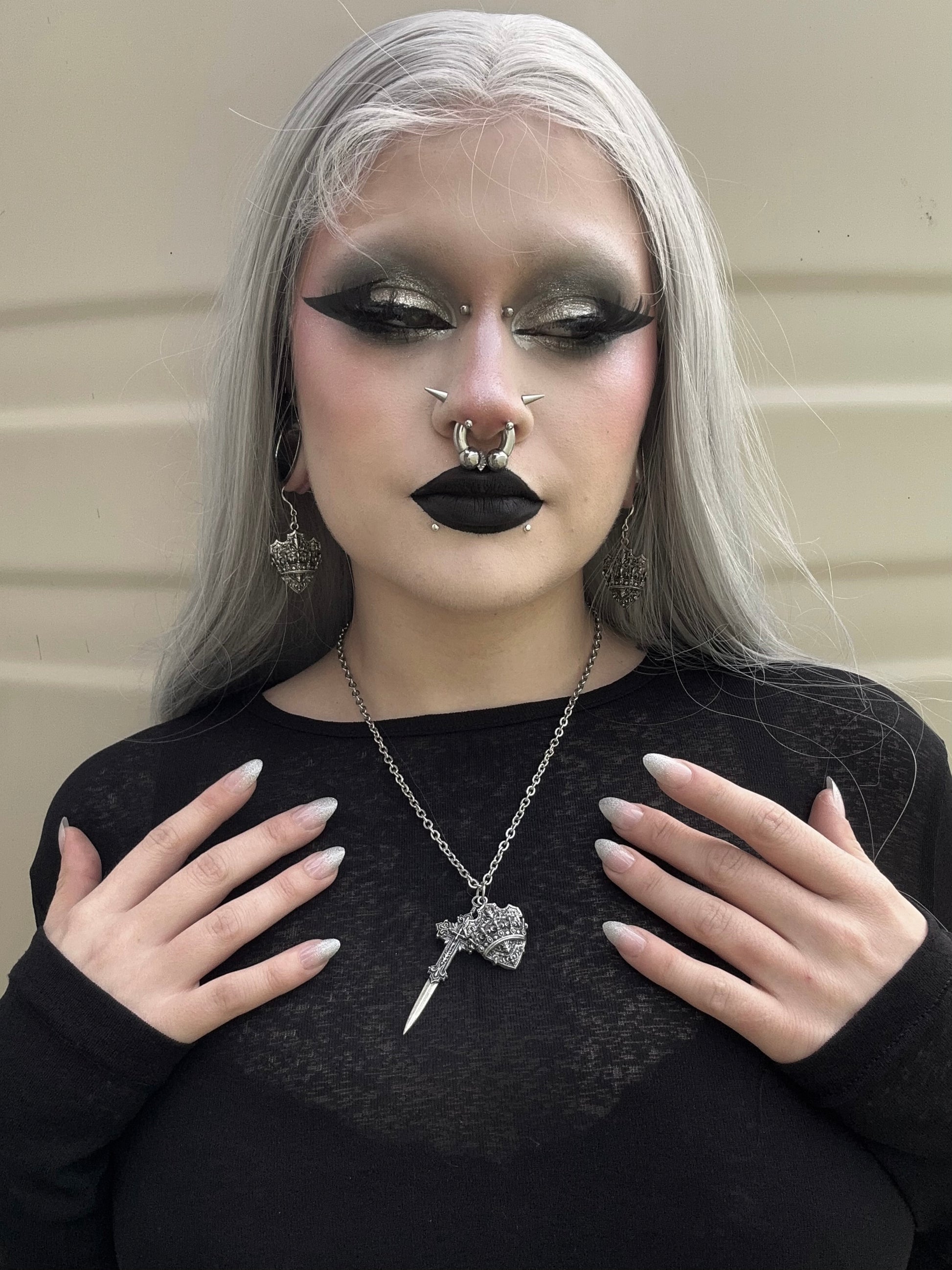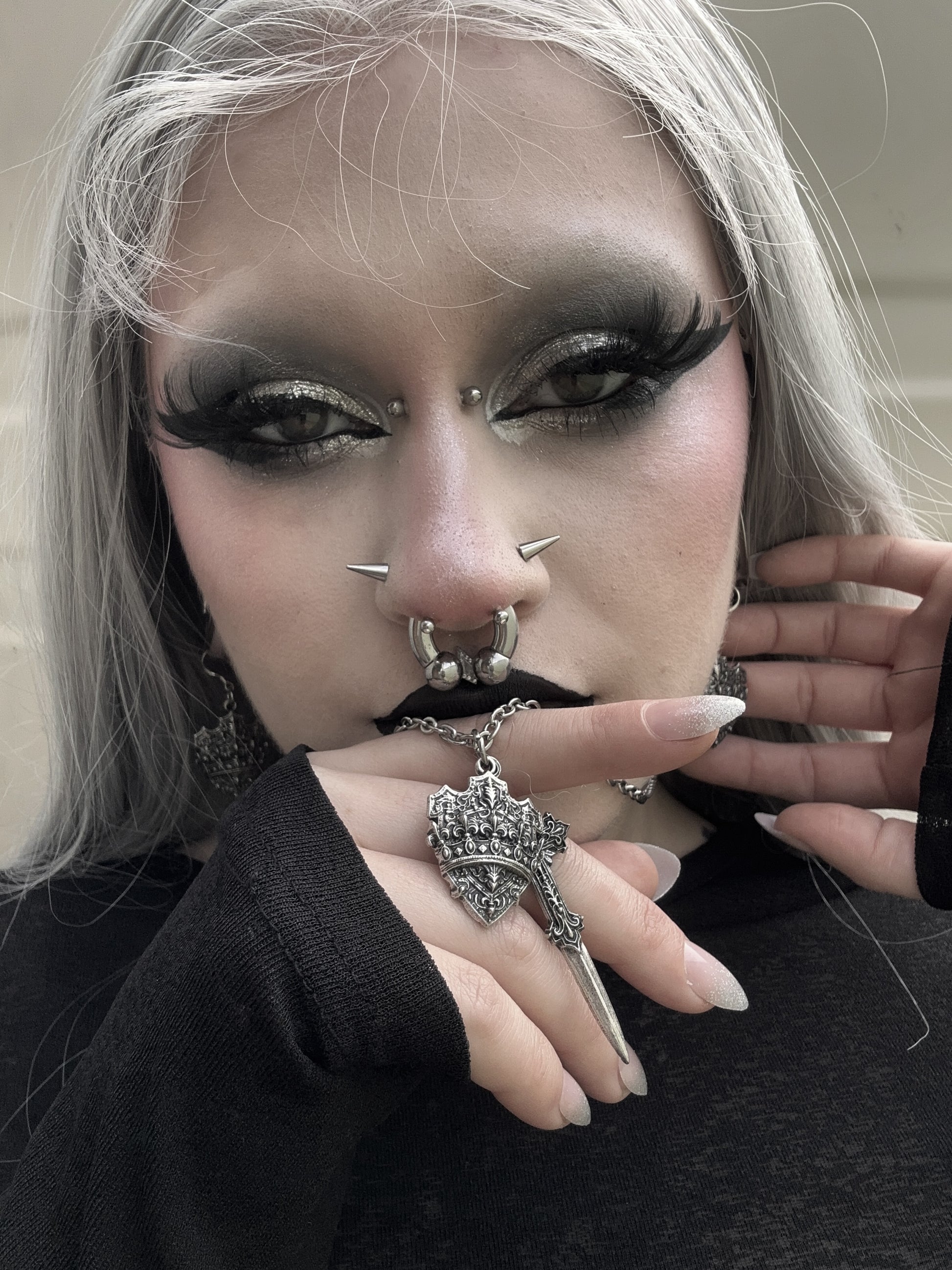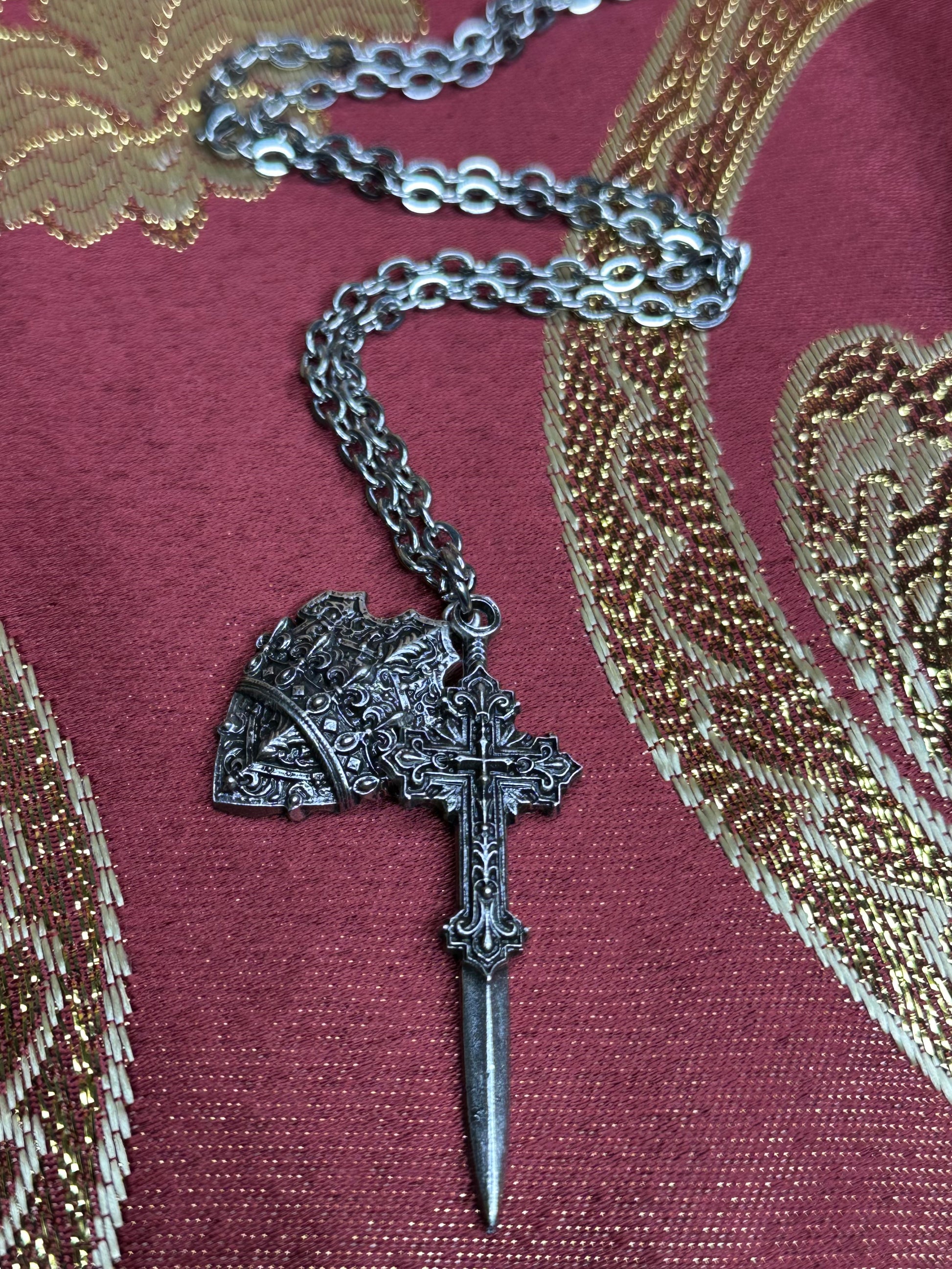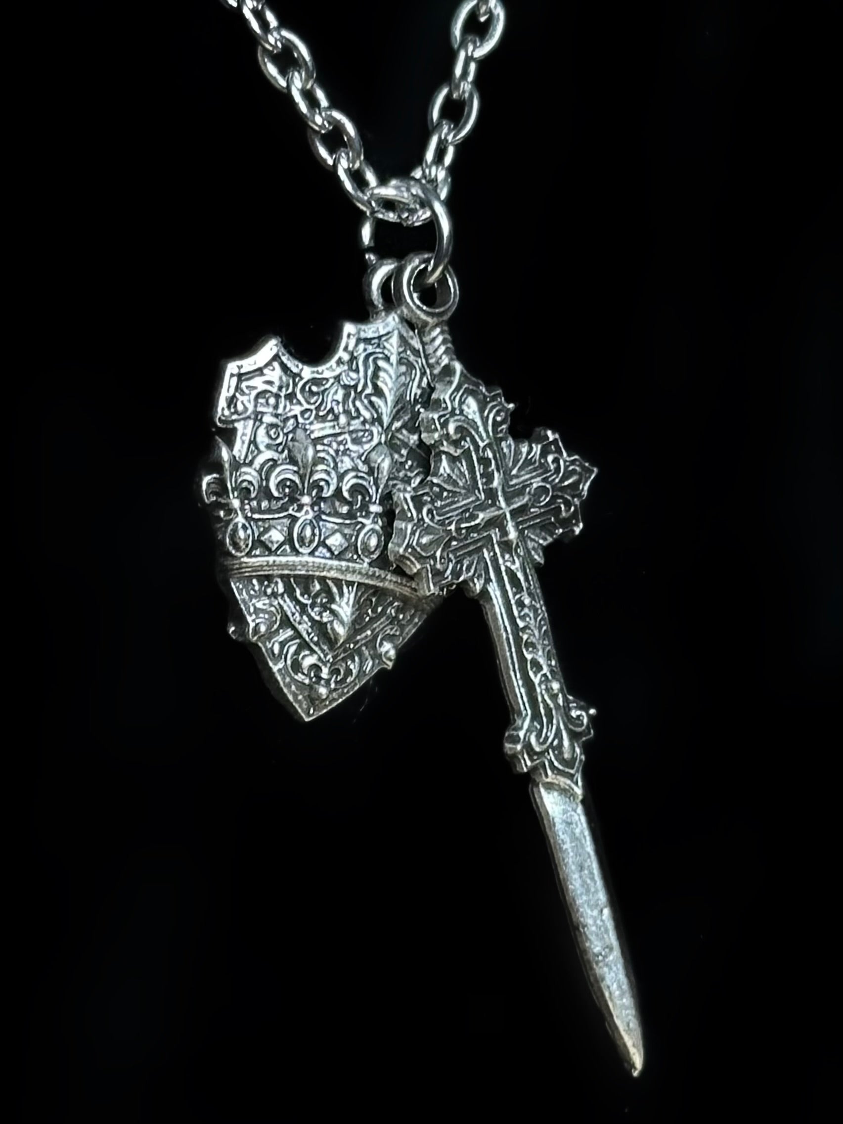 Weapons are a girls best friends. Shield and protect yourself everyday. A shield & sword pendant pairing on a stainless steel chain. Can be paired with matching earrings.