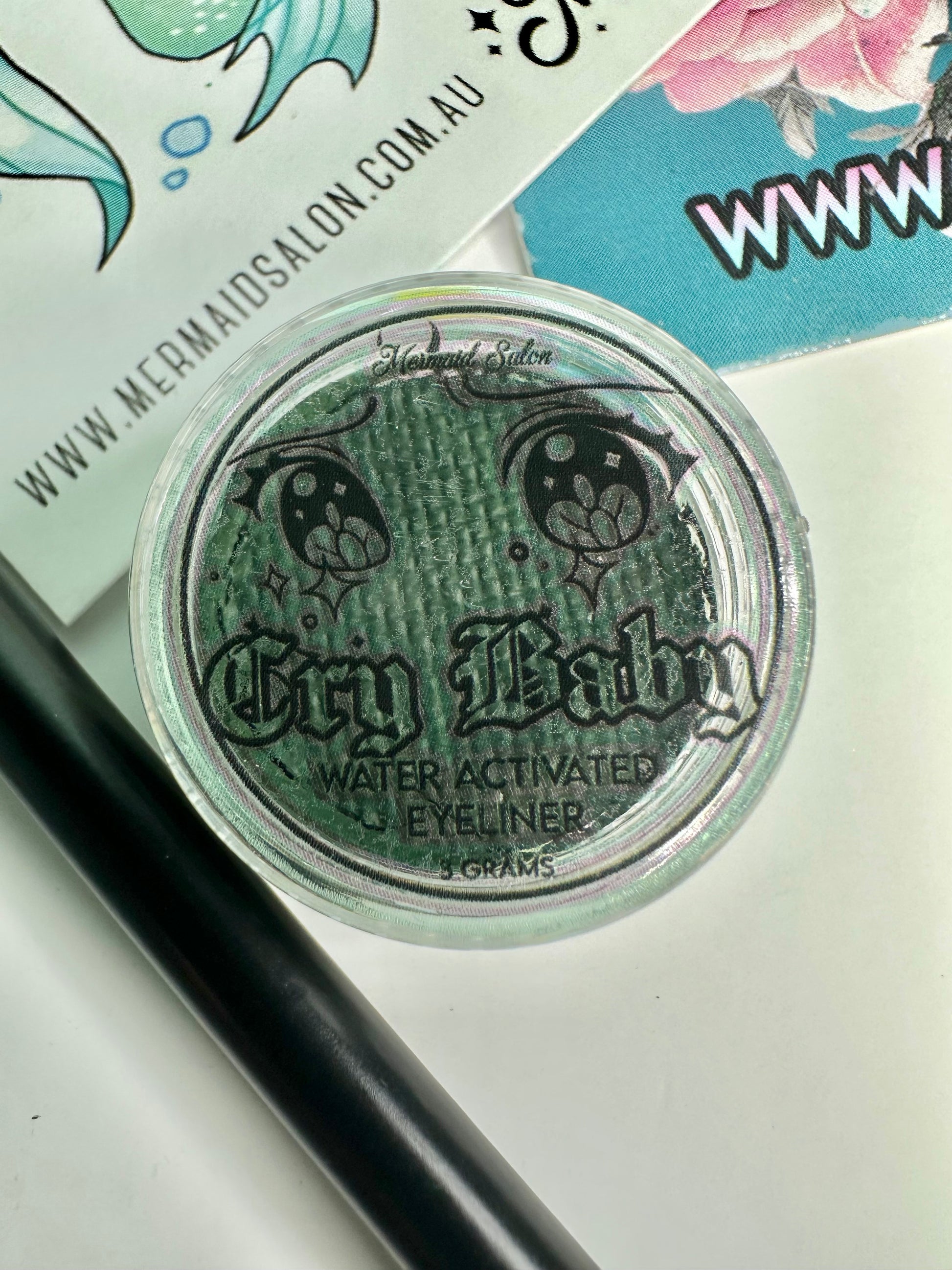 Mermaid Salon CryBaby Aqua -Liner is a traditional eyeliner / face paint hybrid.