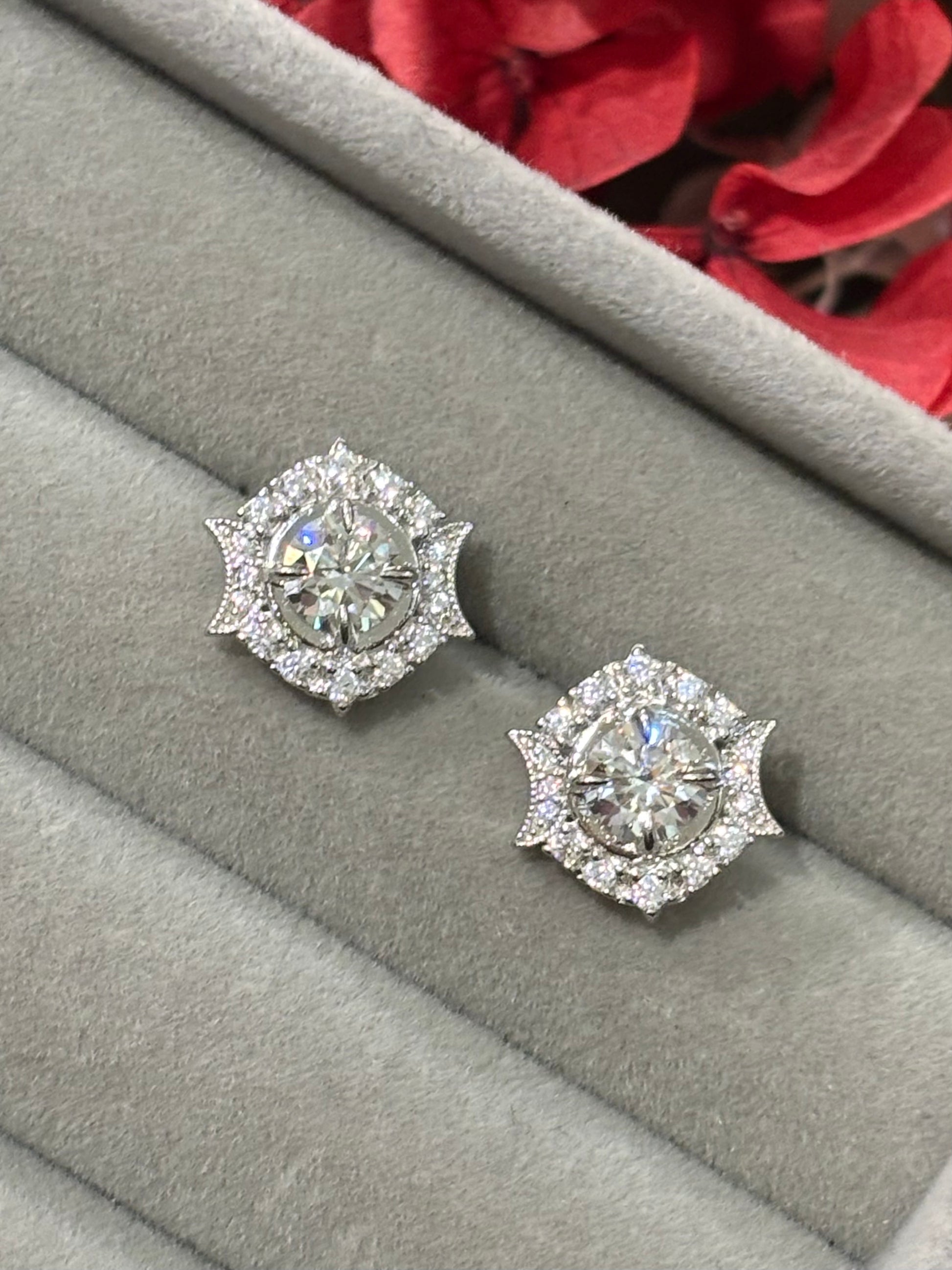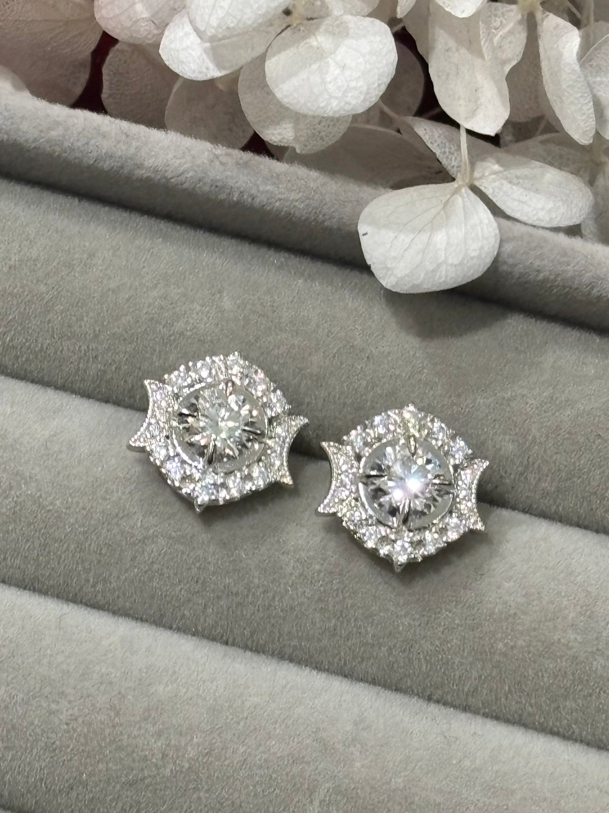 Absolutely stunning custom made pair of earrings with fine craft details constructed of 925 silver with rhodium plating for durability.