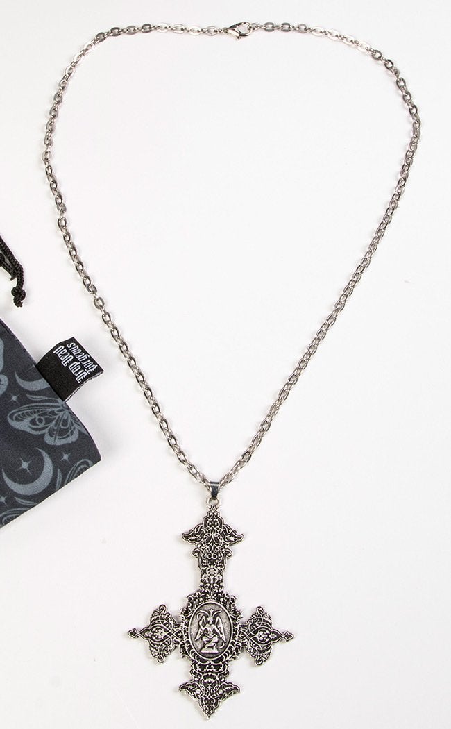 Worship at the altar of forbidden knowledge with the Unholy Rosary Chain. The intricate pendant depicts an inverted cross embossed with intricate details that surround an impression of Baphomet.
